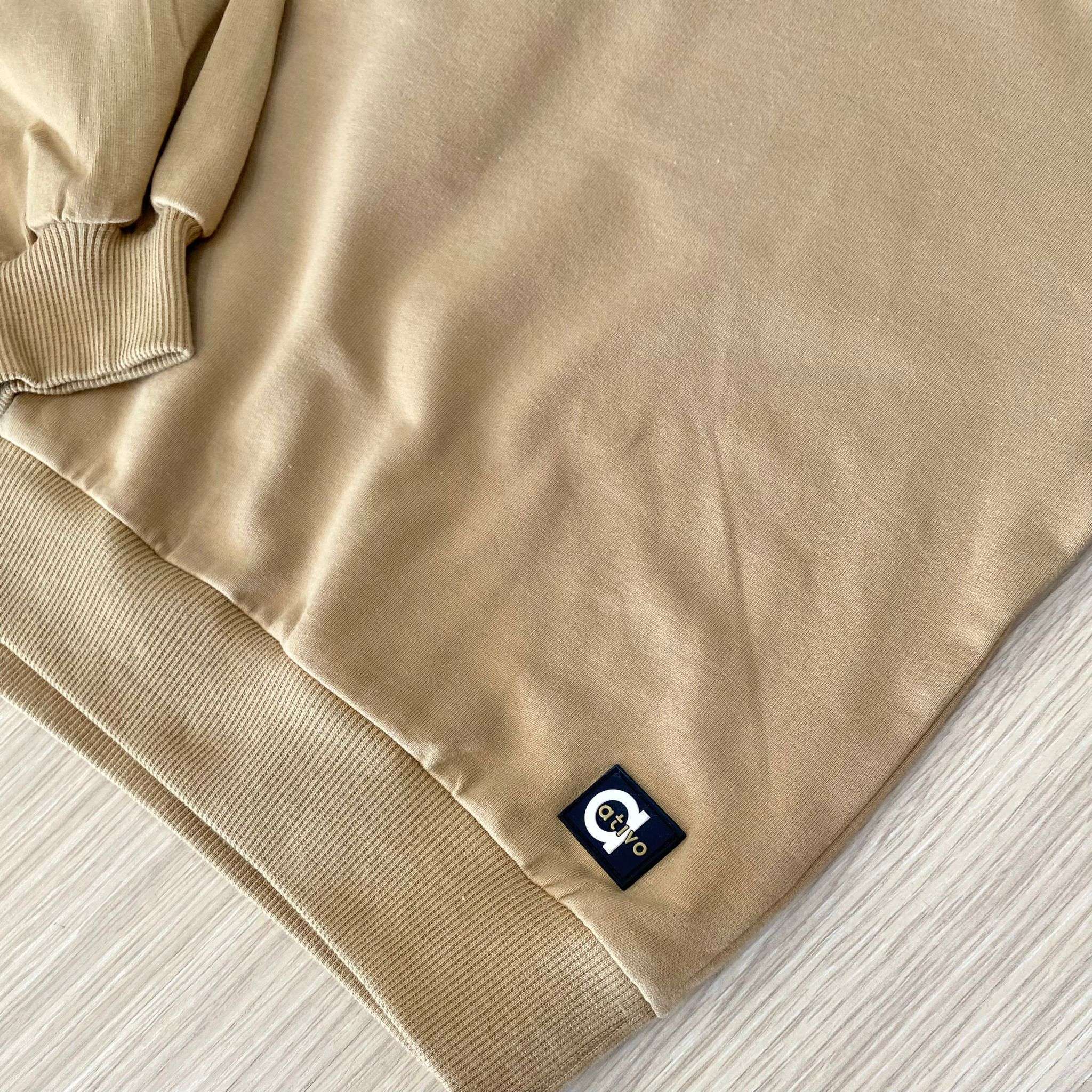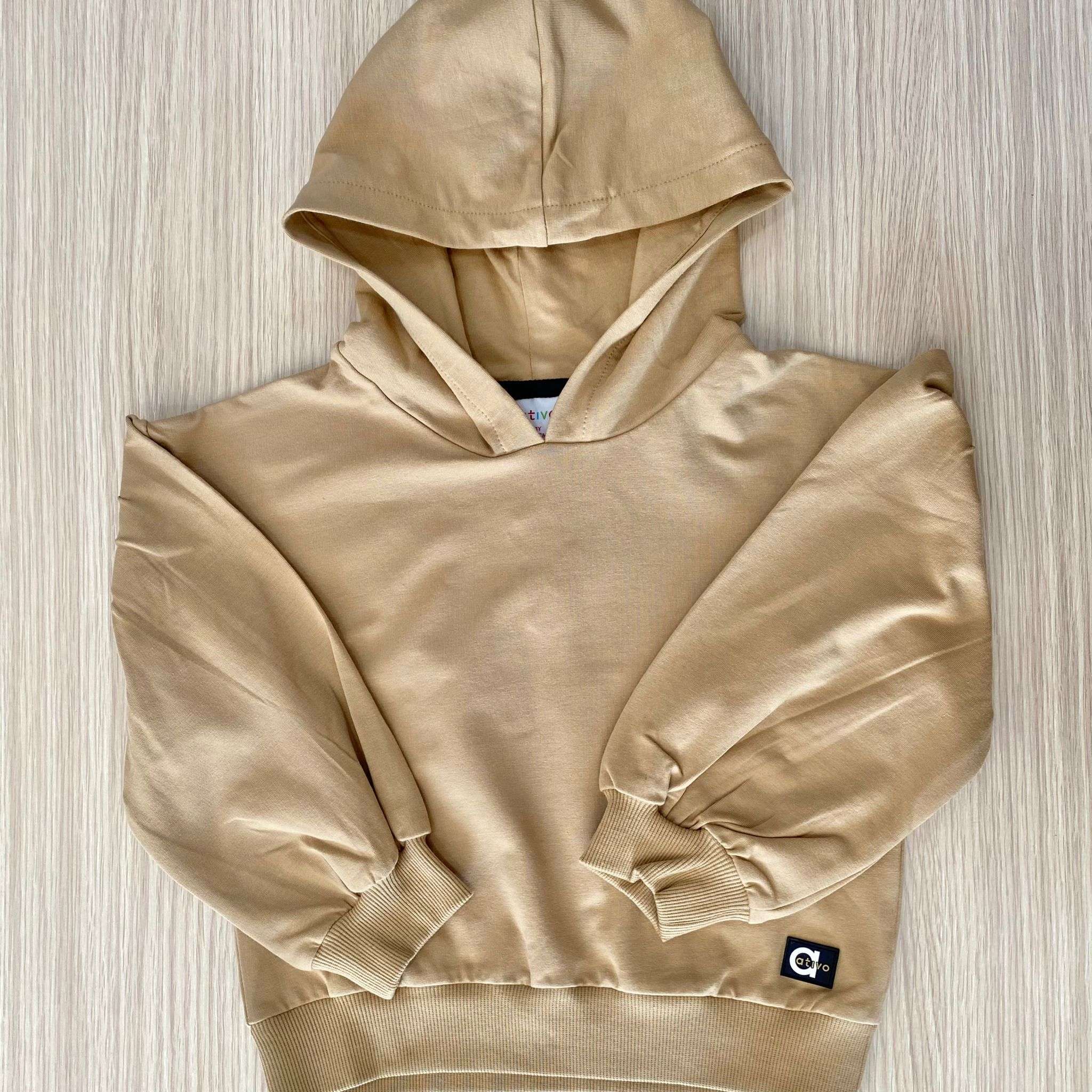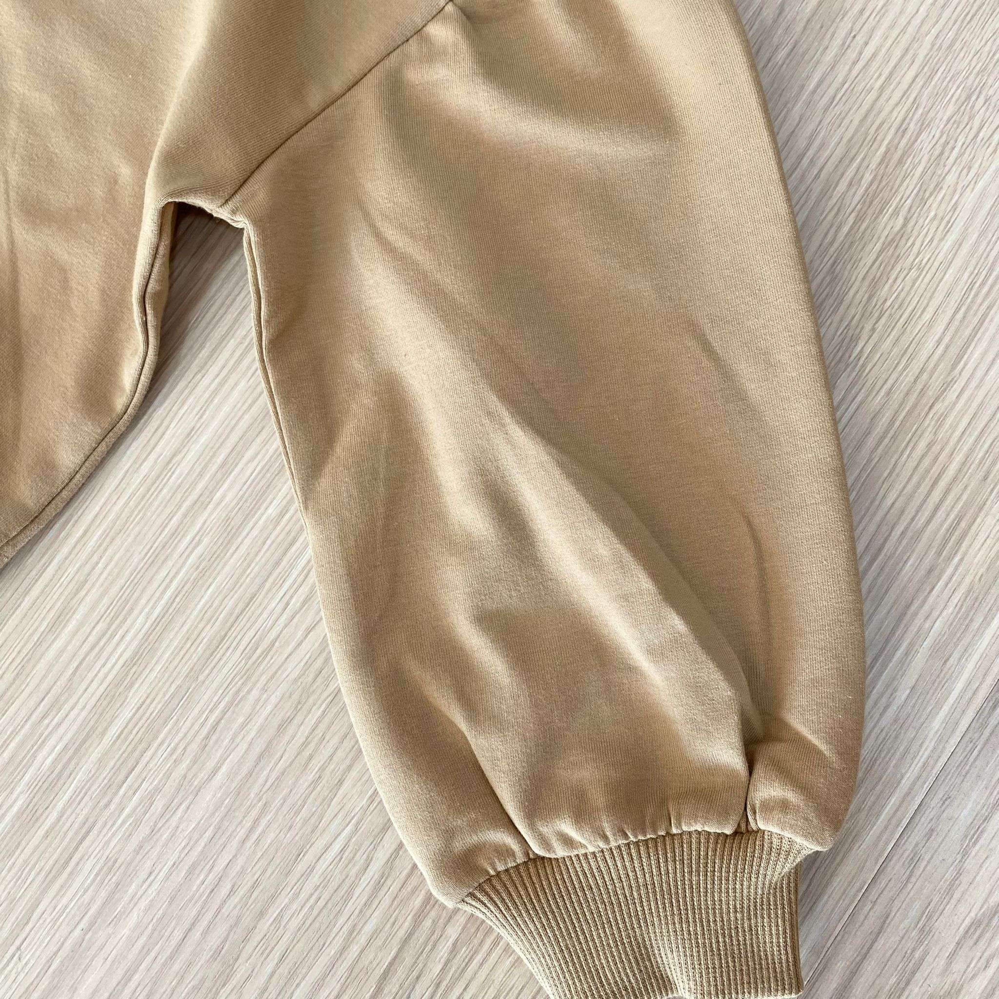 Felpa bambina/ragazza in cotone, di colore beige, con maniche a sbuffo. 95% Cotone. 5% Elastane.