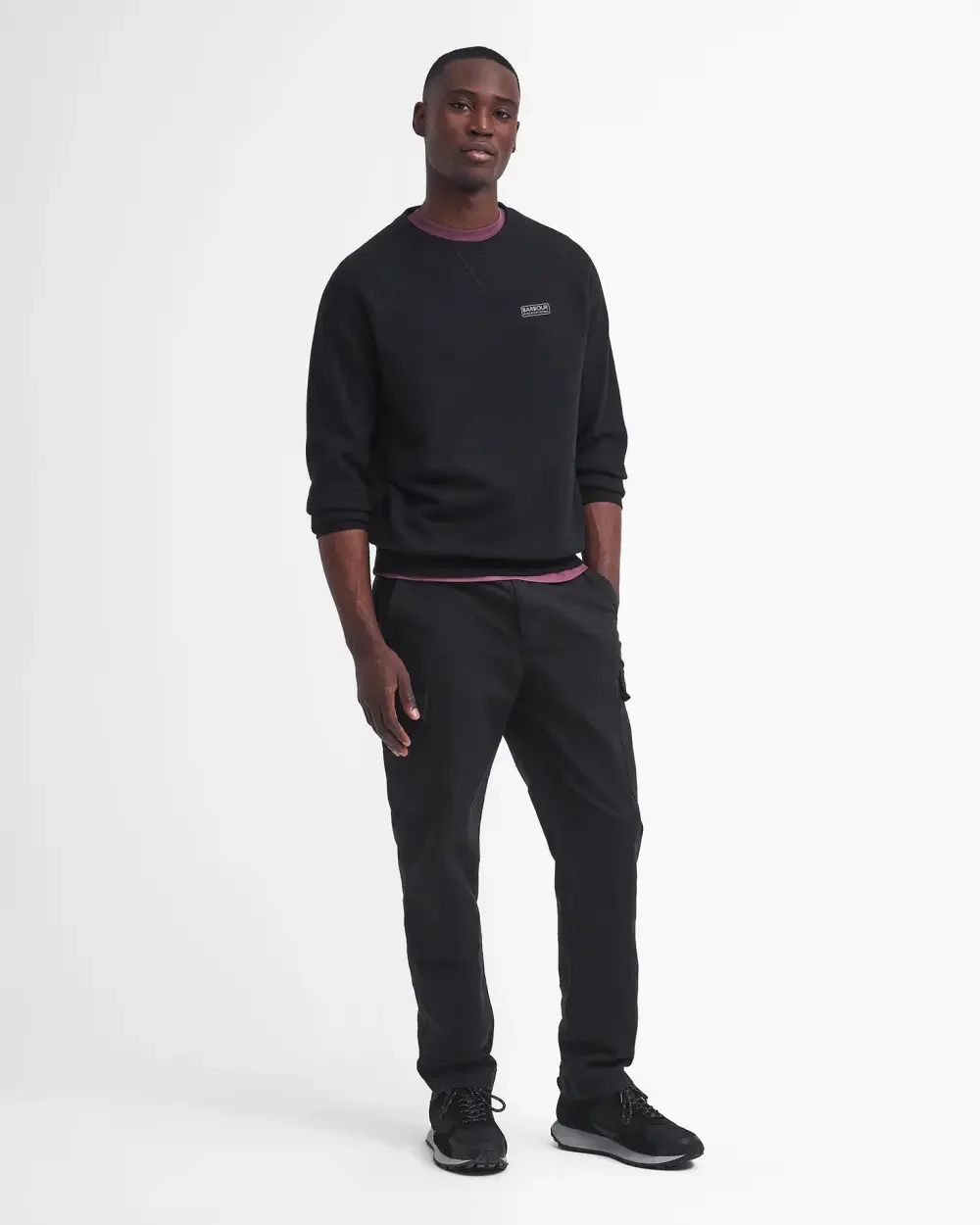 Questo versatile maglione basic a girocollo da uomo è dotato di maniche raglan ed è rifinito con il logo Barbour International in silicone sul petto. La sua vestibilità slim gli conferisce uno stile contemporaneo.
