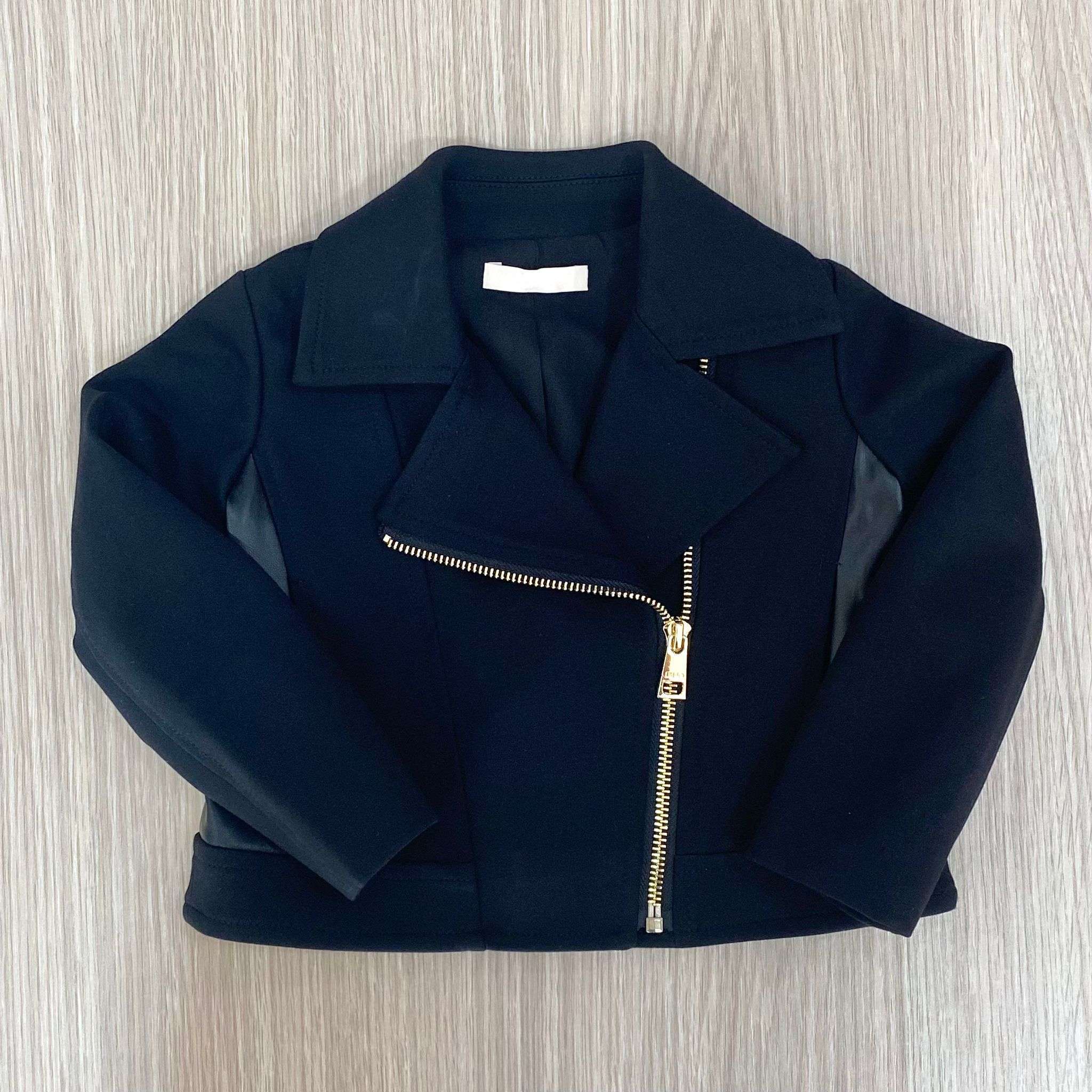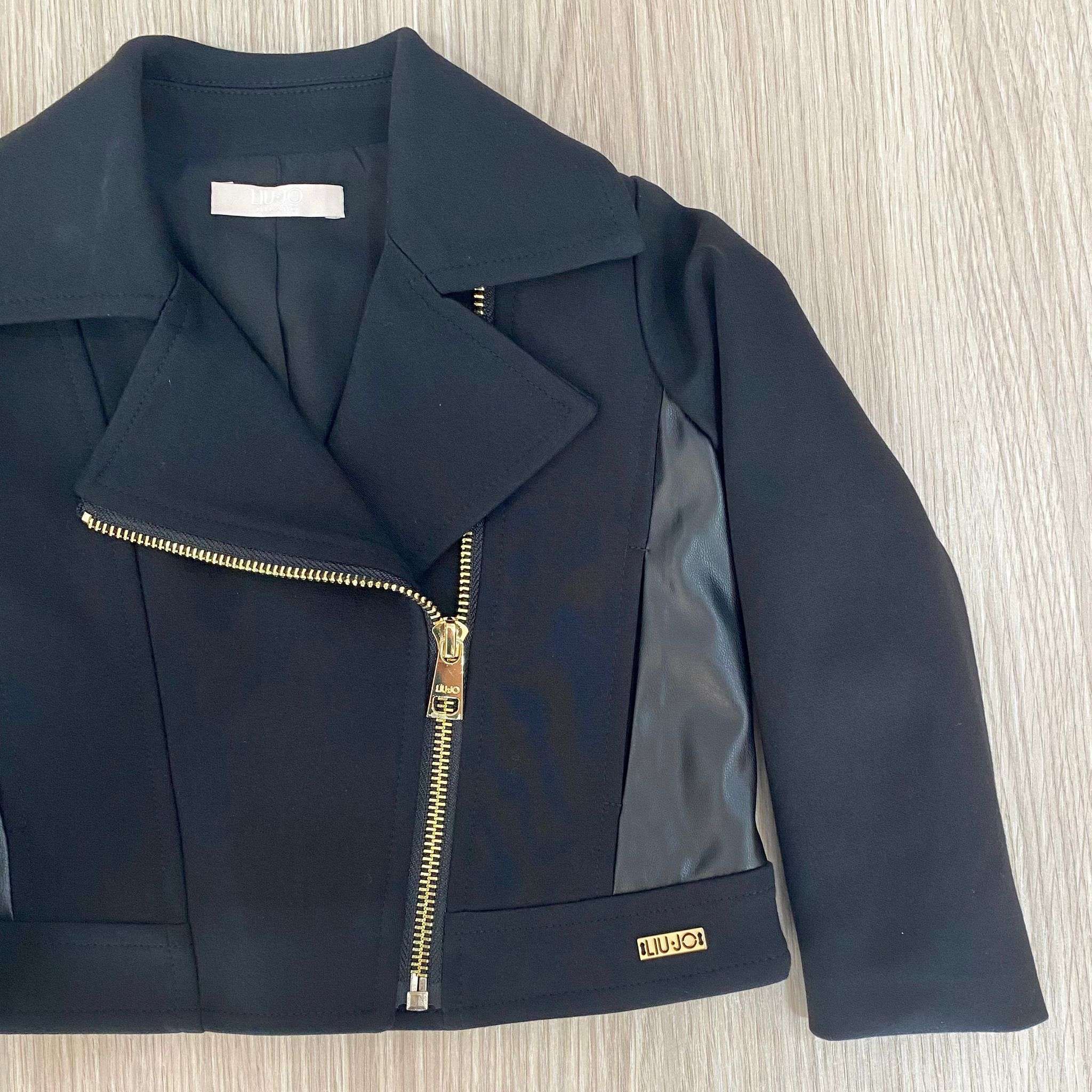 Giubbotto bambina in caldo cotone, di colore nero, con dettaglio in ecopelle, logo di colore oro. Giubbotto con cerniera.