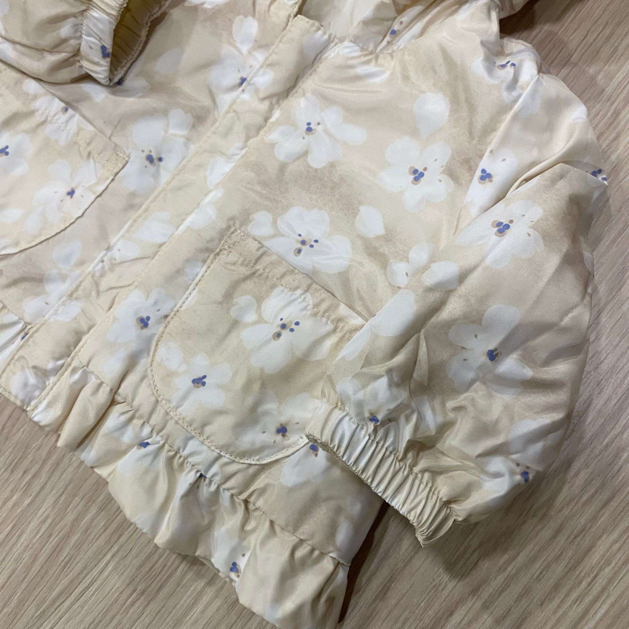 Giubbotto Neonata Reversibile 100g iDO Delicato, pratico e raffinato, il giubbotto reversibile 100g per neonata firmato iDO è la scelta ideale per accompagnare le più piccole durante le mezze stagioni. Grazie alla doppia vestibilità, offre due look in un unico capo: • lato tinta unita color panna, essenziale ed elegante • lato con romantica fantasia floreale, dolce e femminile L’imbottitura leggera da 100 grammi assicura il giusto tepore senza appesantire, mentre il cappuccio protegge dal vento e dalle giornate più fresche. I polsini elasticizzati, le tasche applicate e la chiusura frontale con zip garantiscono comfort e praticità. Il delicato volant…
