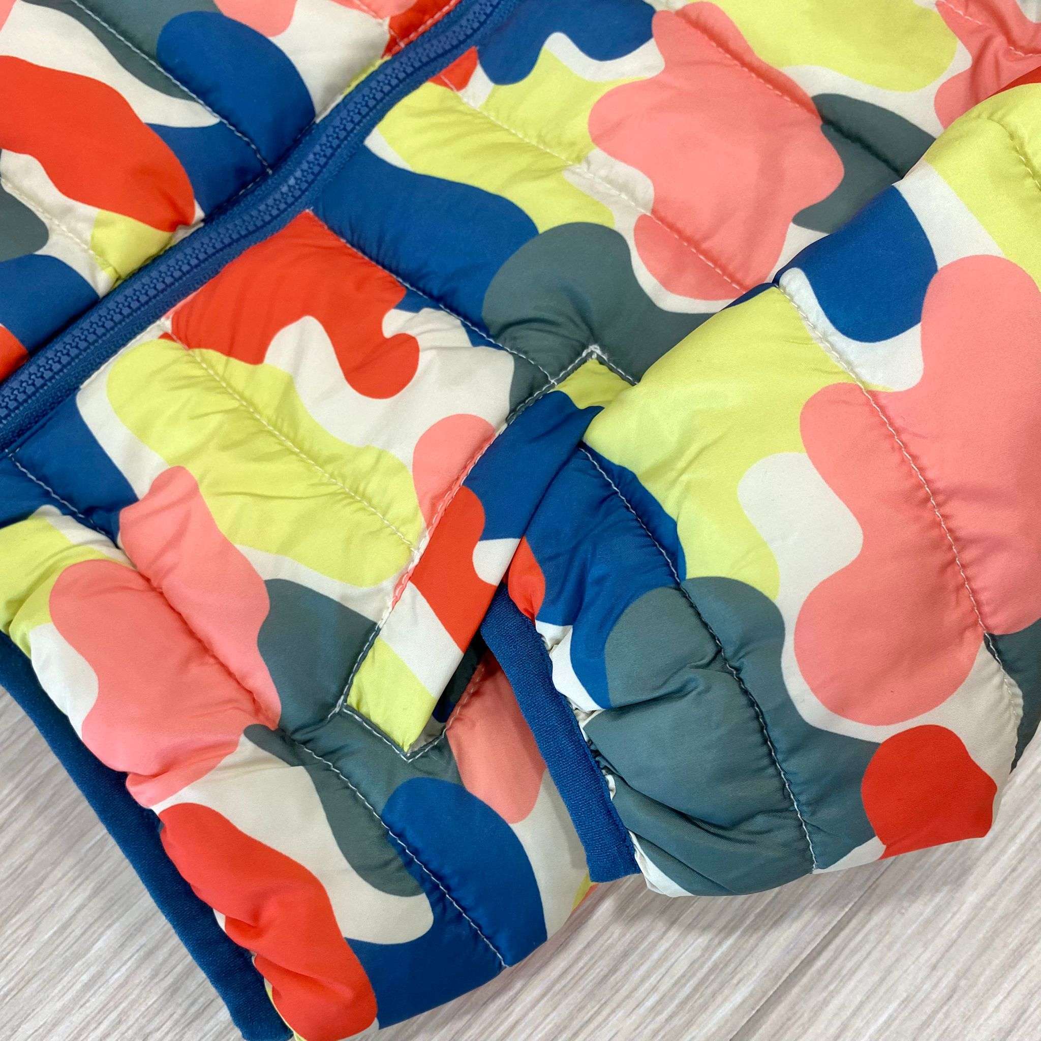 Piumino neonato/bambino con imbottitura in caldo tessuto, di vari colori. Piumino con tasche. 100% Poliestere.