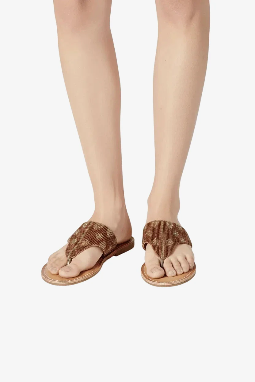 Gli infradito con motivo rombi marrone e oro della collezione Bikini Mi.Ma portano un design geometrico contemporaneo ai tuoi piedi. Un pattern distintivo per chi ama lo stile moderno.