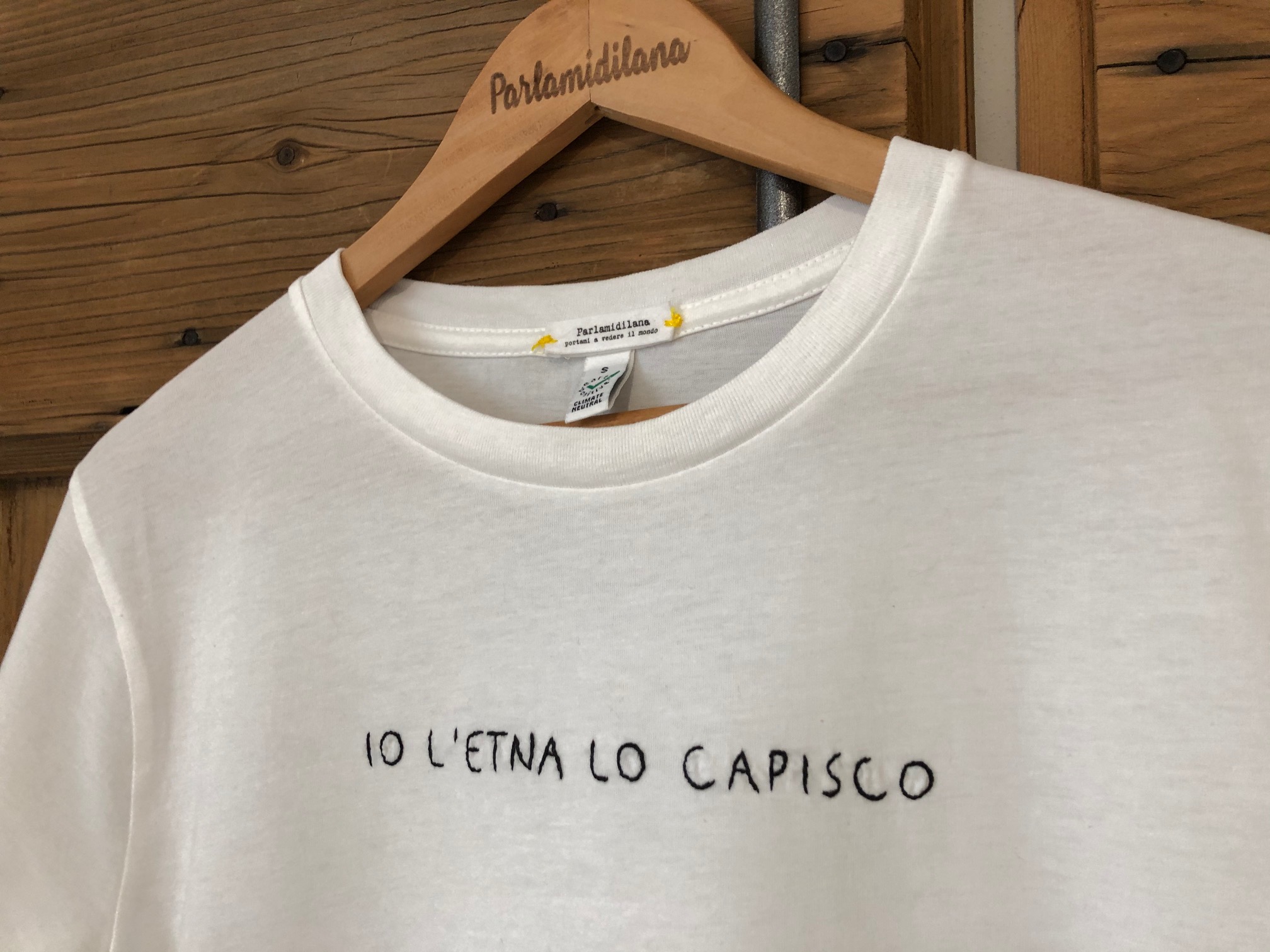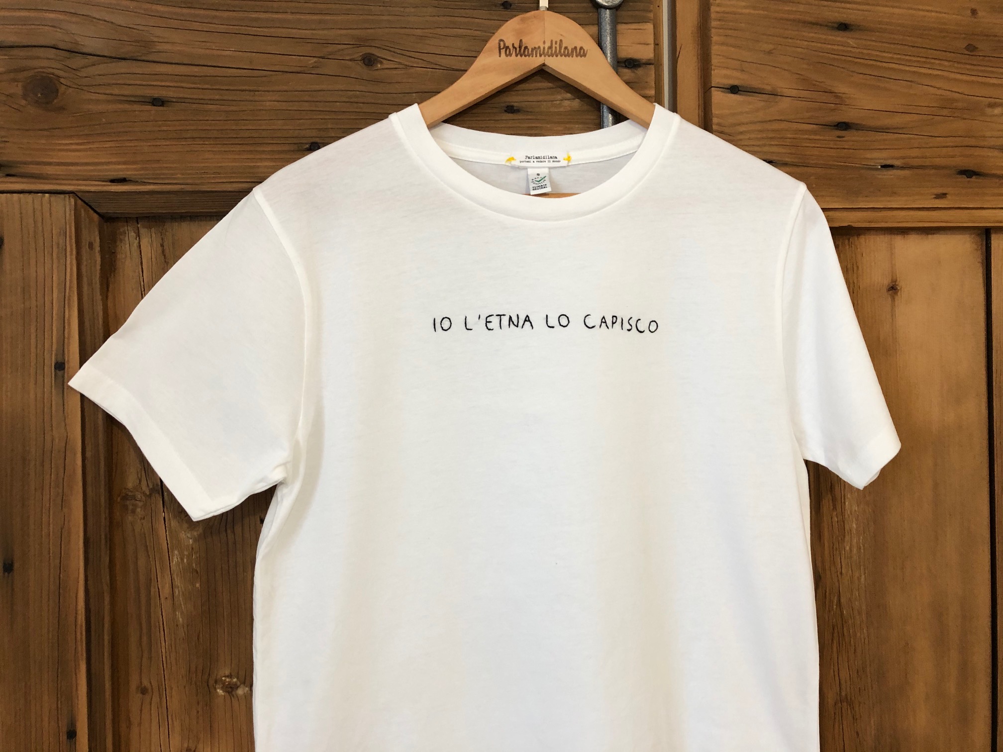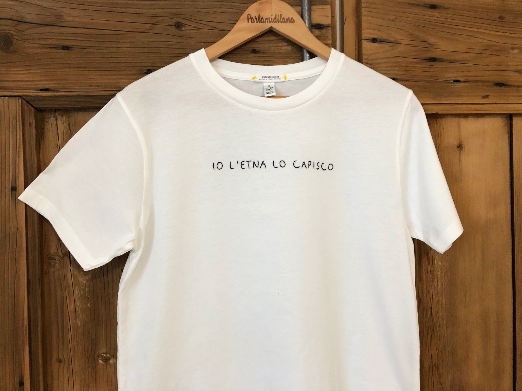T-shirt “IO L’ETNA LO CAPISCO” ricamata a mano. Vedi tabella TAGLIE in galleria foto