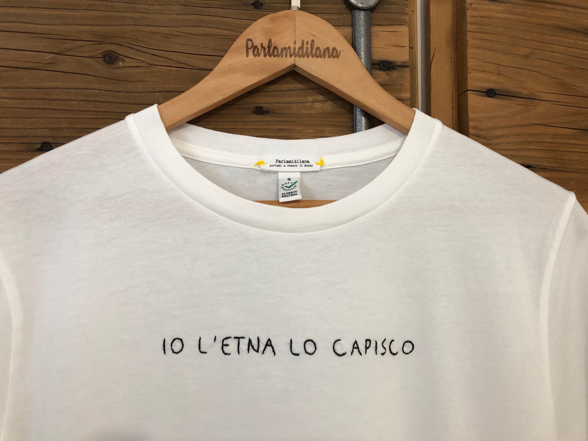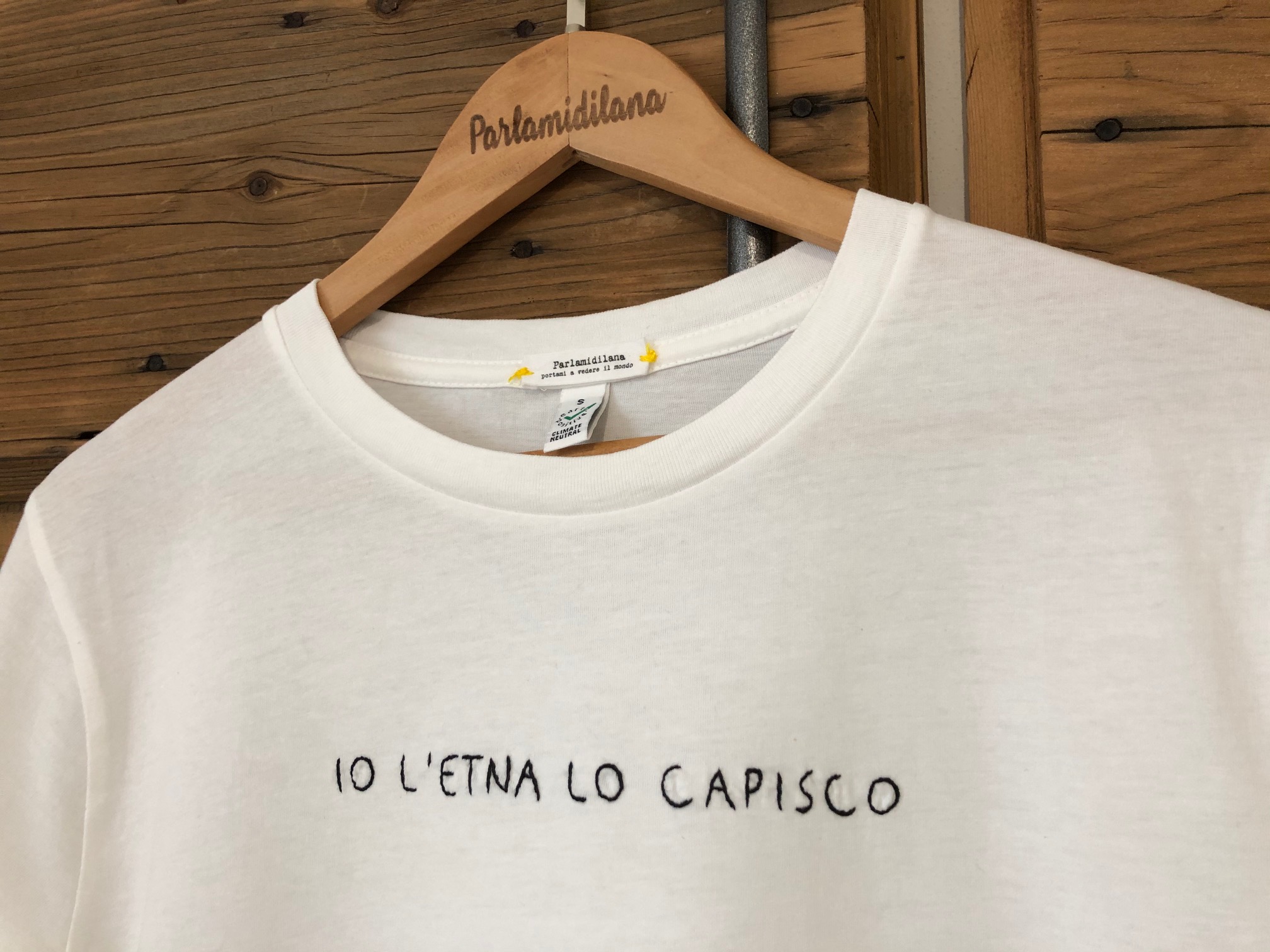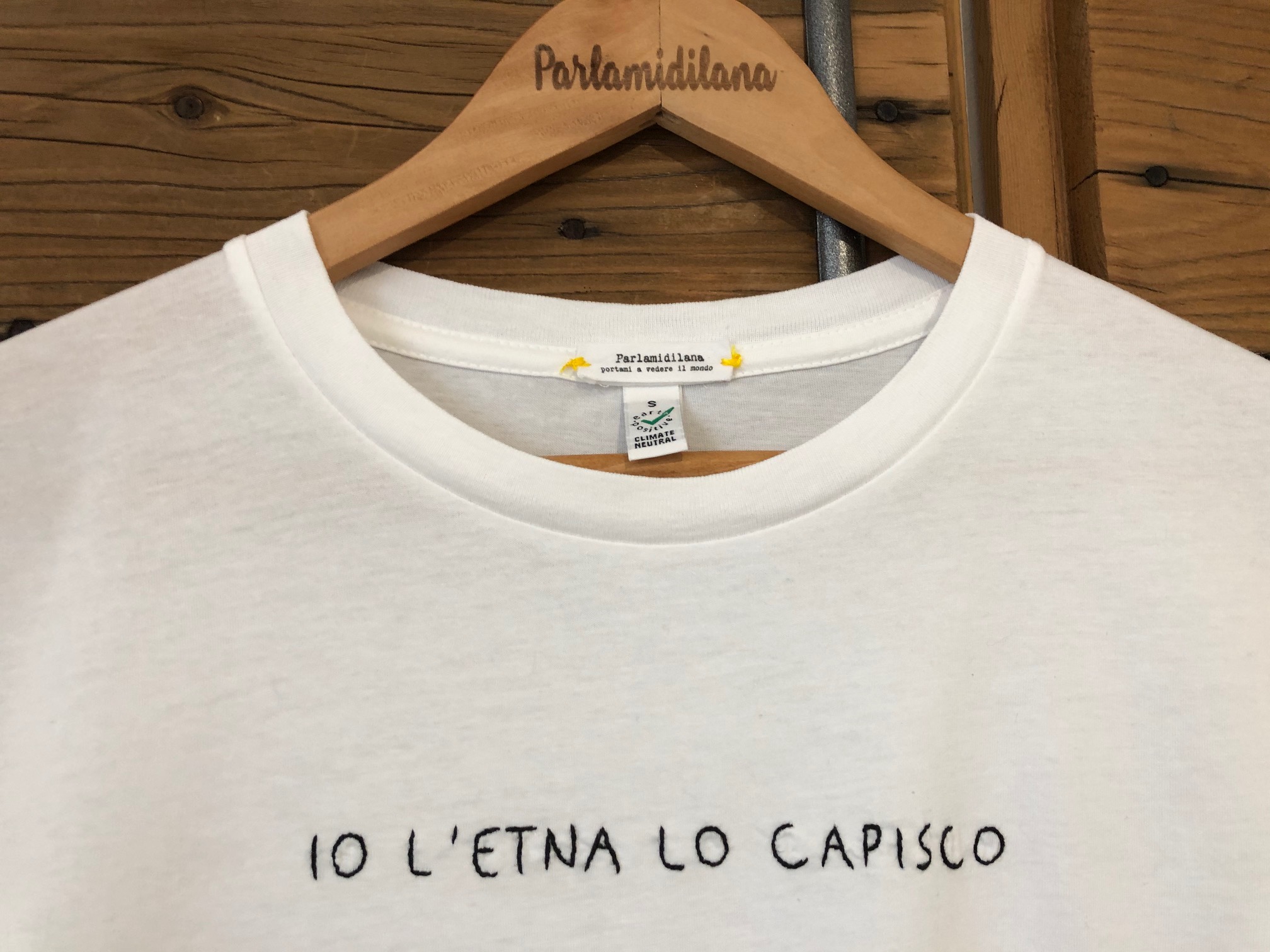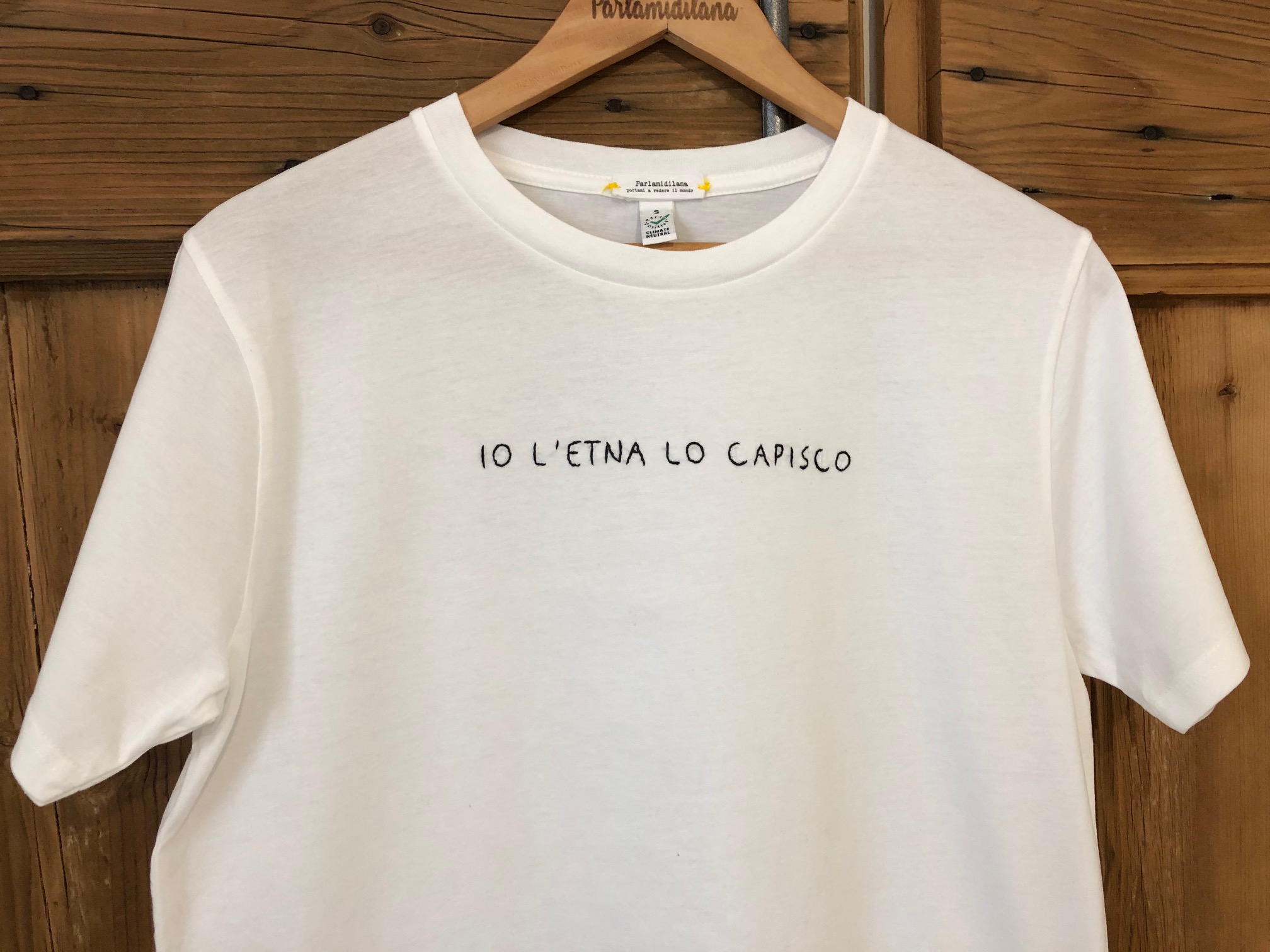 T-shirt “IO L’ETNA LO CAPISCO” ricamata a mano. Vedi tabella TAGLIE in galleria foto