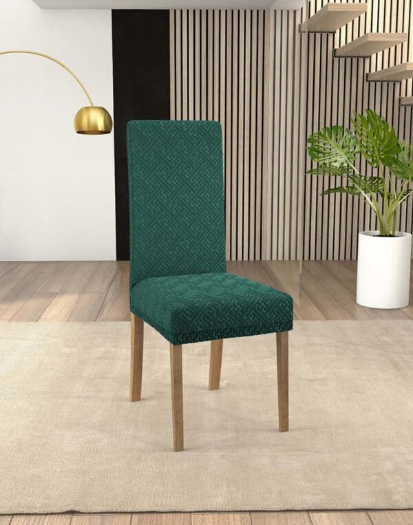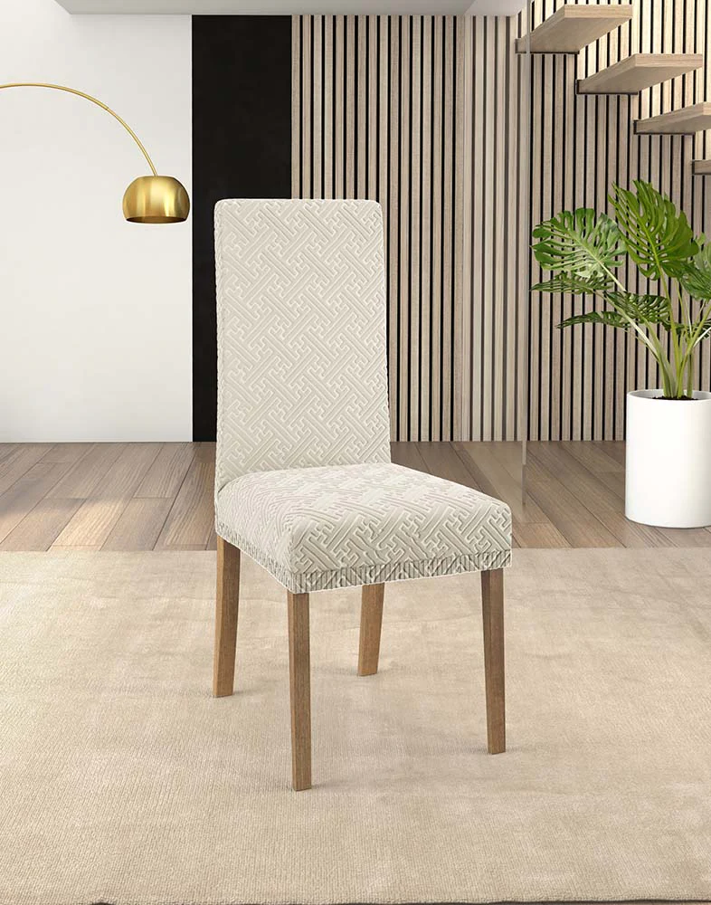 Il coprisedia IRGE Bonton รจ realizzato in tessuto bielastico e biestendibile facilmente adattabile alla forma della sedia.