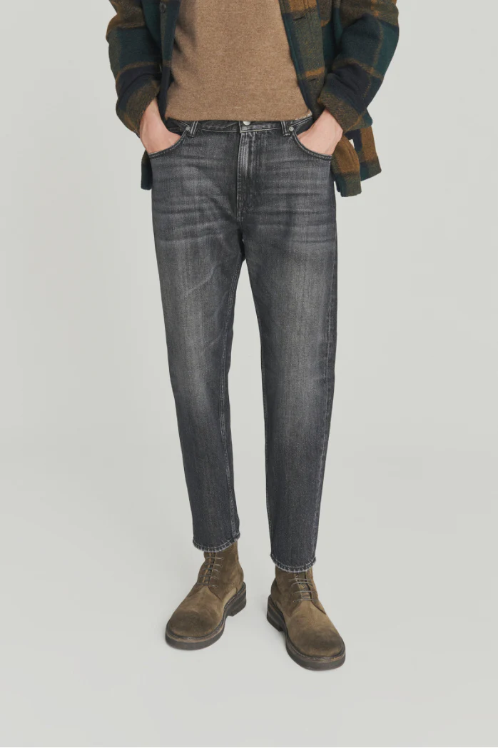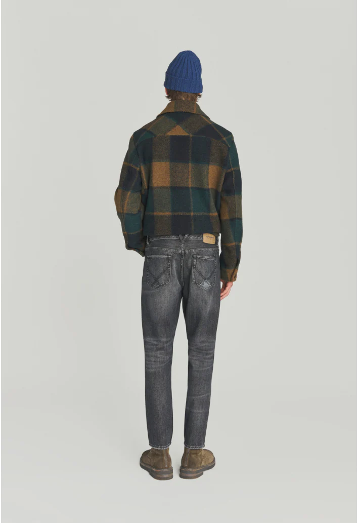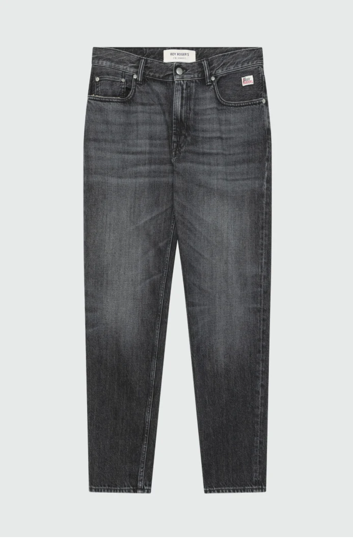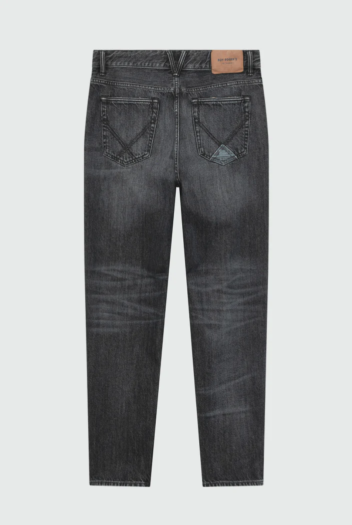 Jeans in denim used tinta unita. Vita media con passanti e salpa stampata sul retro. Chiusura con bottone logato e zip. Due tasche sul fronte e due tasche sul retro con label Roy Roger’s applicata. Carrot fit. COMPOSIZIONE: 100% COTONE. CODICI: RSC002N120 – 2043-C0998 COLORE: NERO VITA: MEDIA FIT: CARROT