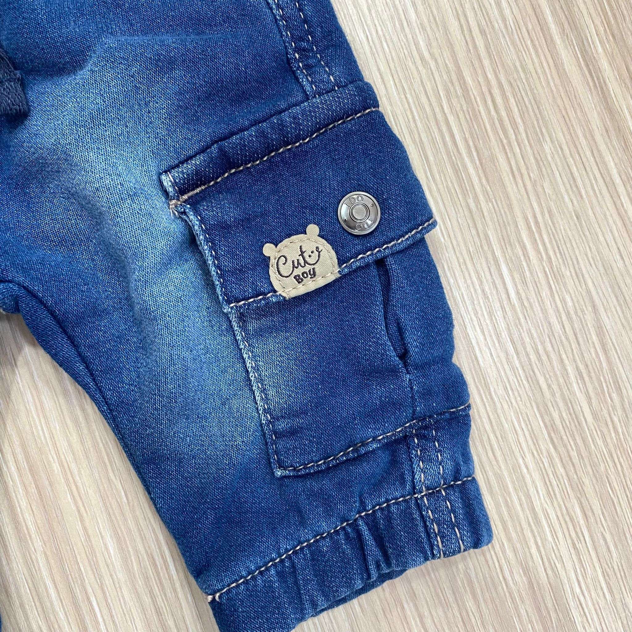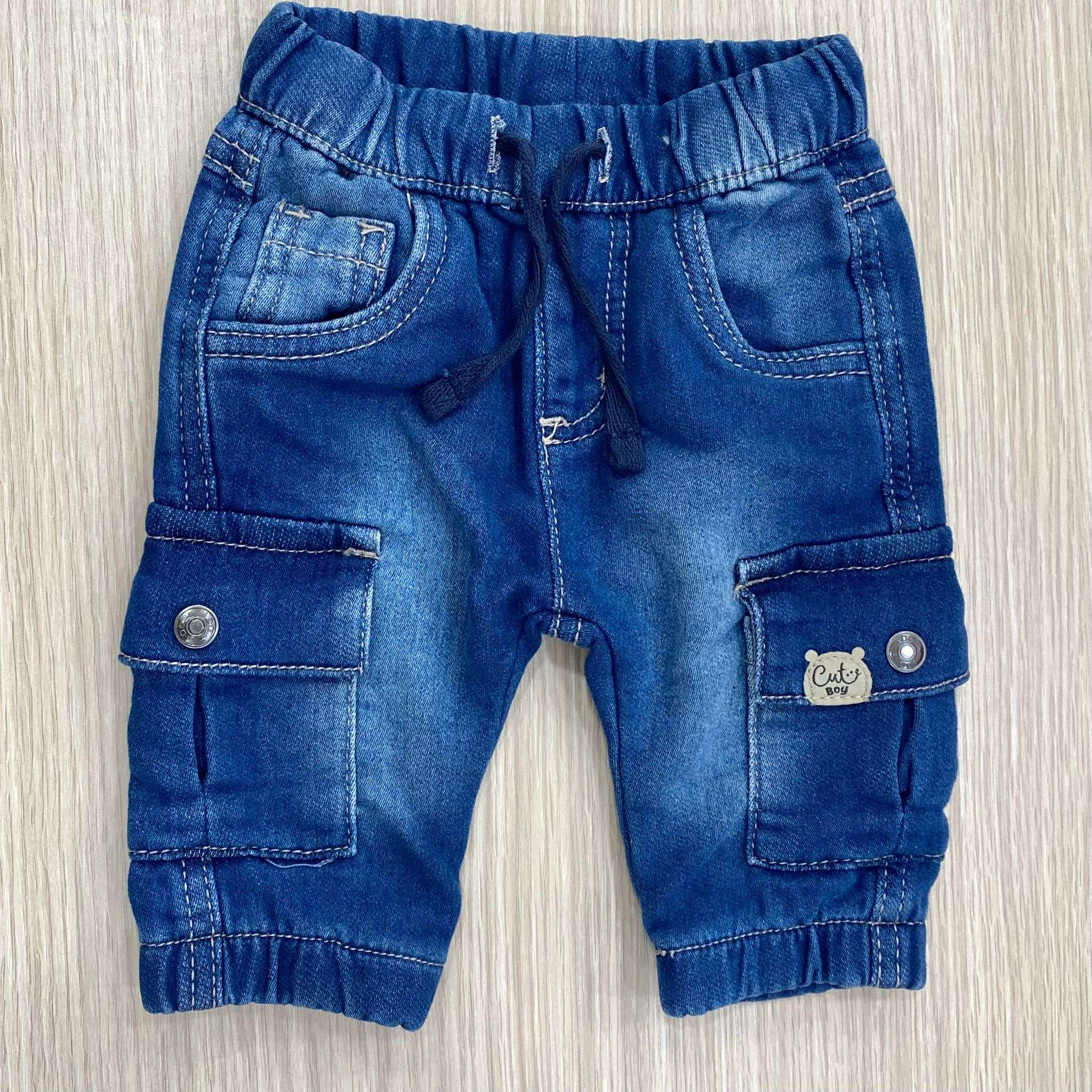 Jeans a cargo neonato/bambino in cotone, con dettaglio di tasche laterali con laccetto regilabile. 83% Cotone. 15% Poliestere. 2% Elastane.