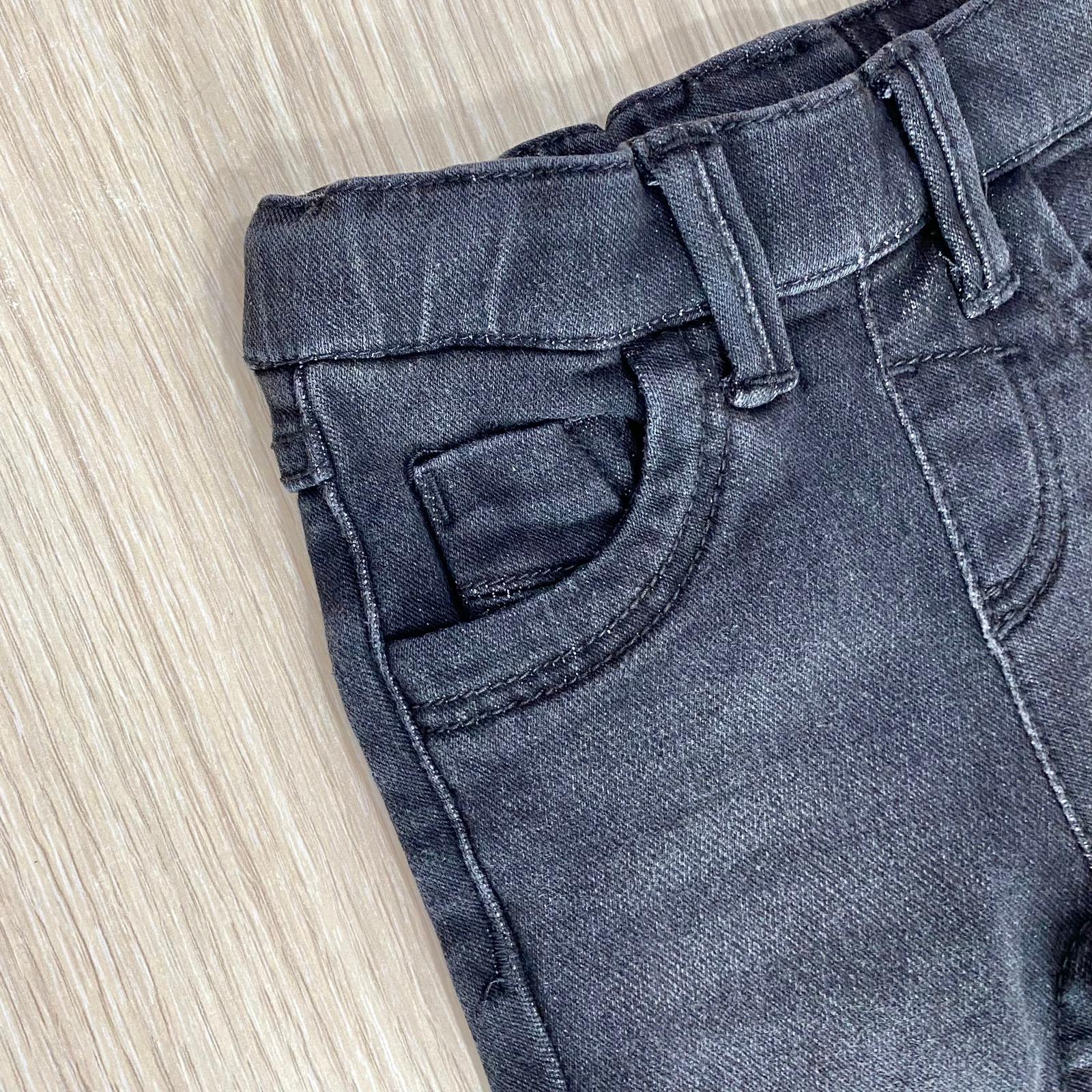 Jeans neonato/bambino in cotone, con elastico regolabile all’interno. 80% Cotone. 18% Poliestere. 2% Elastane.