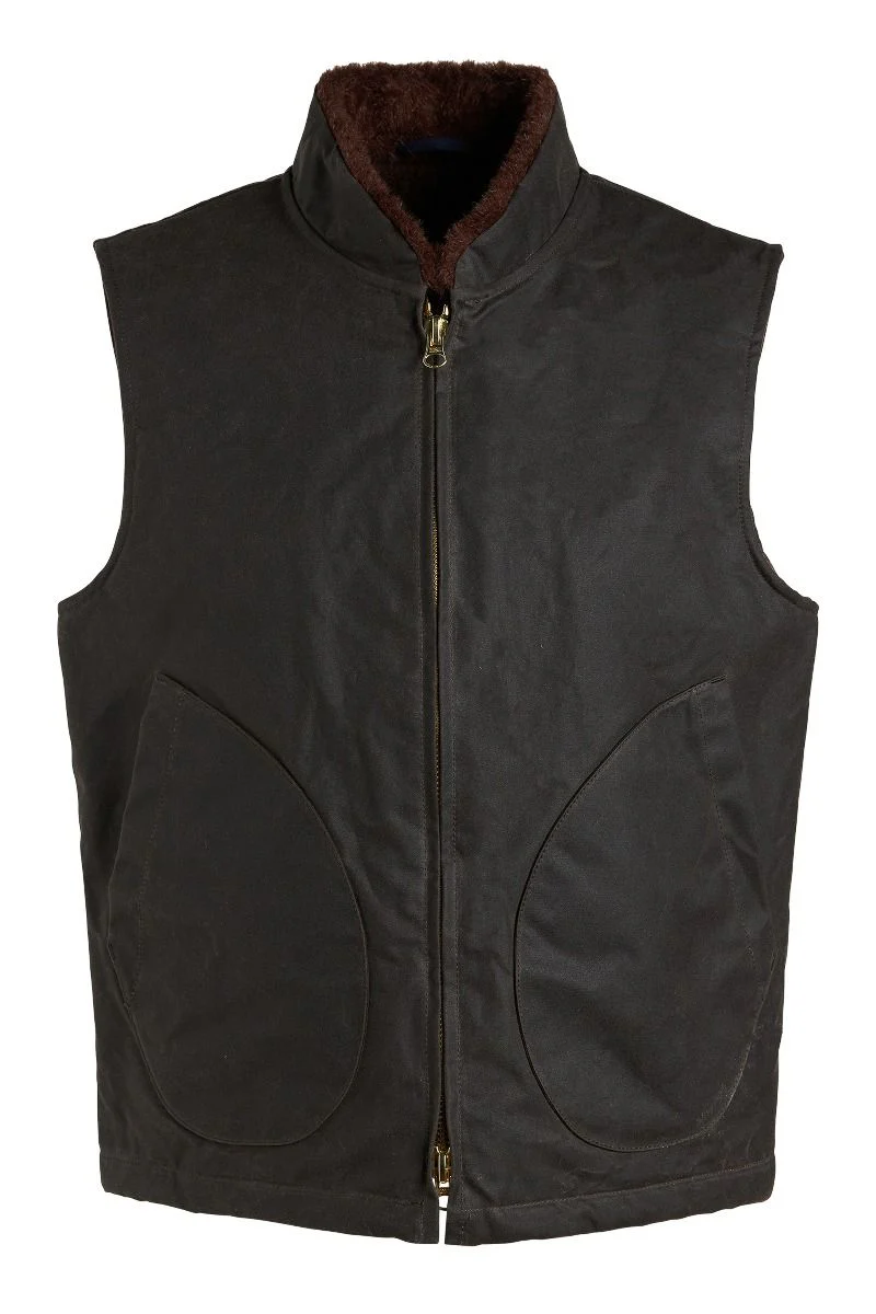 E’ un gilet realizzato in tessuto paraffinato idrorepellente è imbottito nel corpo di ovatta di lana, proveniente da pecore allevate in Italia.