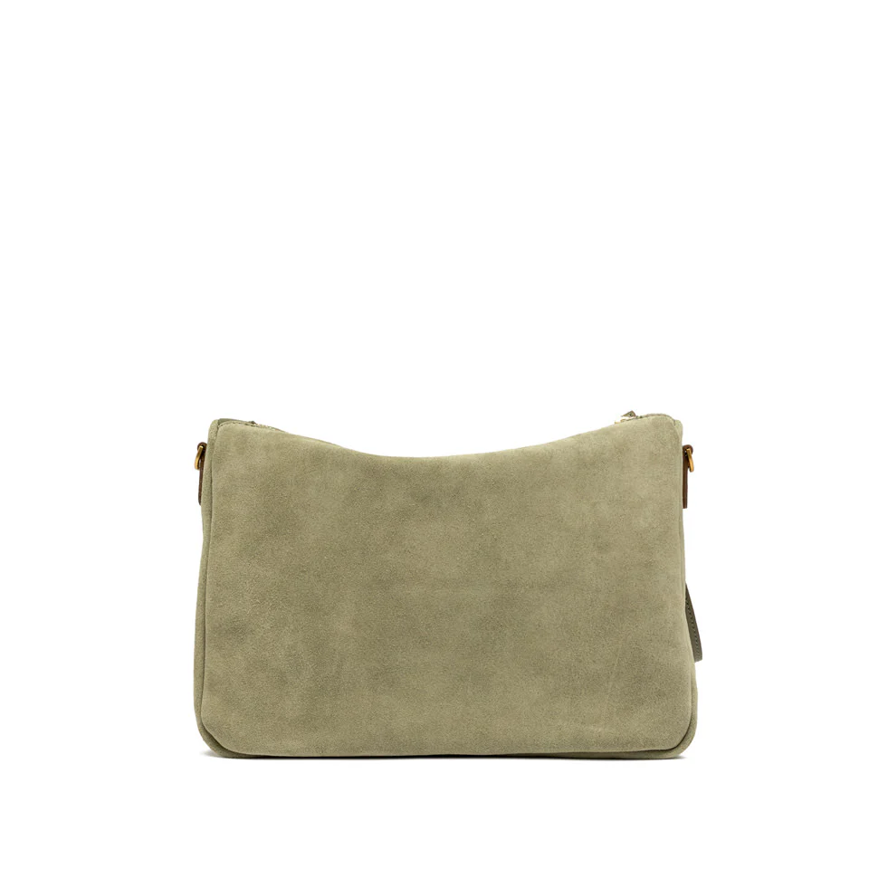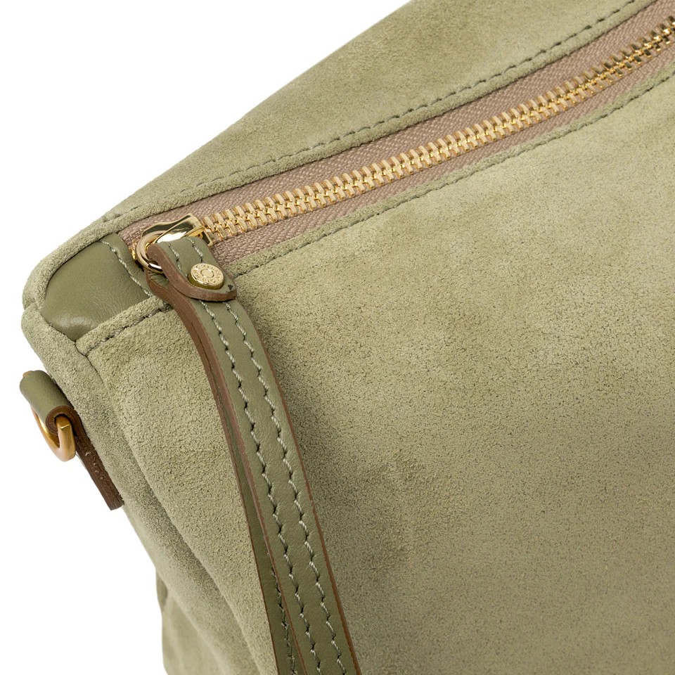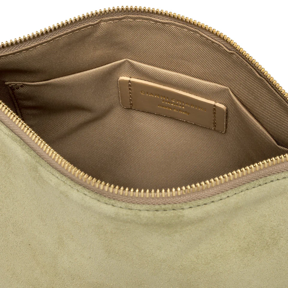 La borsa Nora Pouch di Gianni Chiarini Firenze è realizzata bellissima pelle scamosciata. È dotata di un cinturino in pelle che permette di portarla al polso per un uso quotidiano e di una tracolla regolabile, entrambi removibili. Presenta una chiusura con zip per una maggiore praticità. Dimensioni: 28x21x9 cm.