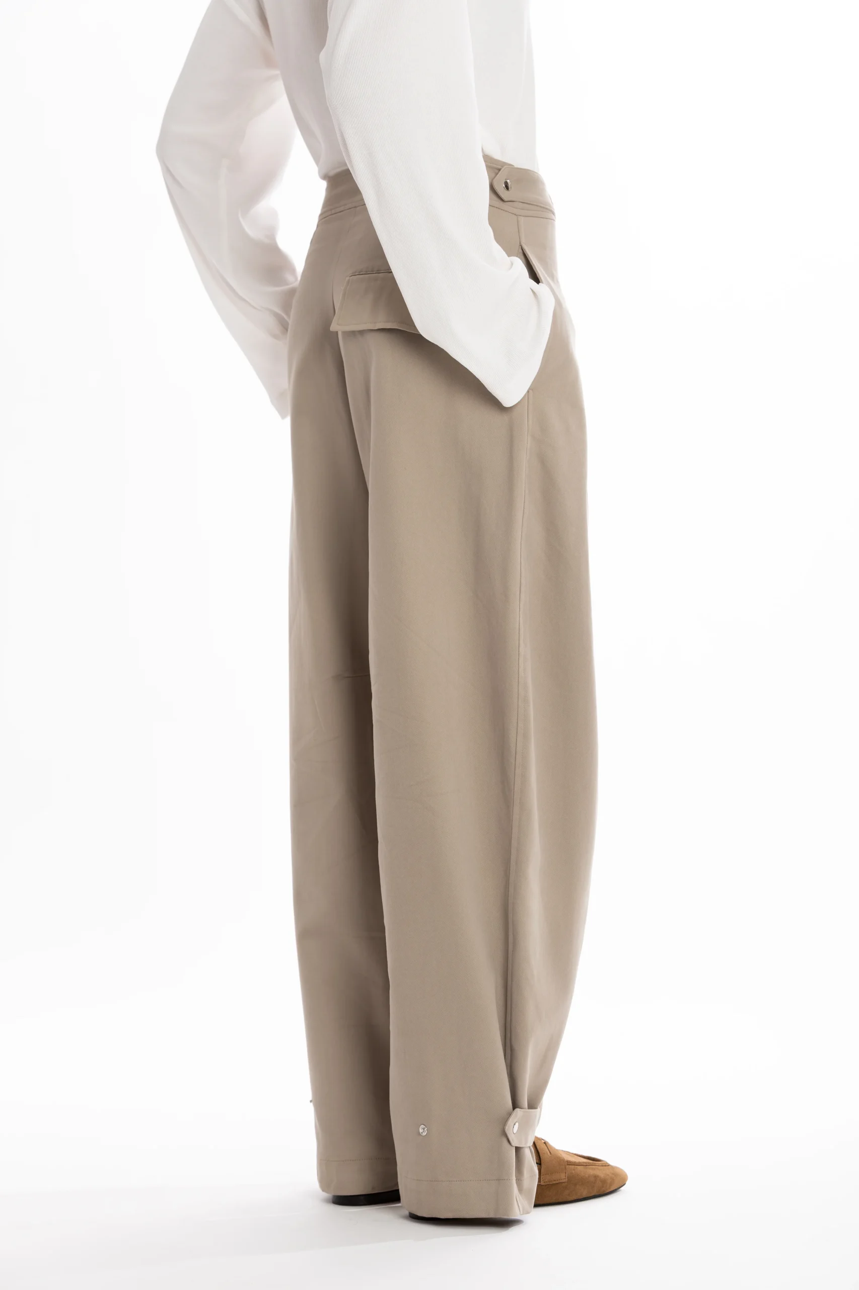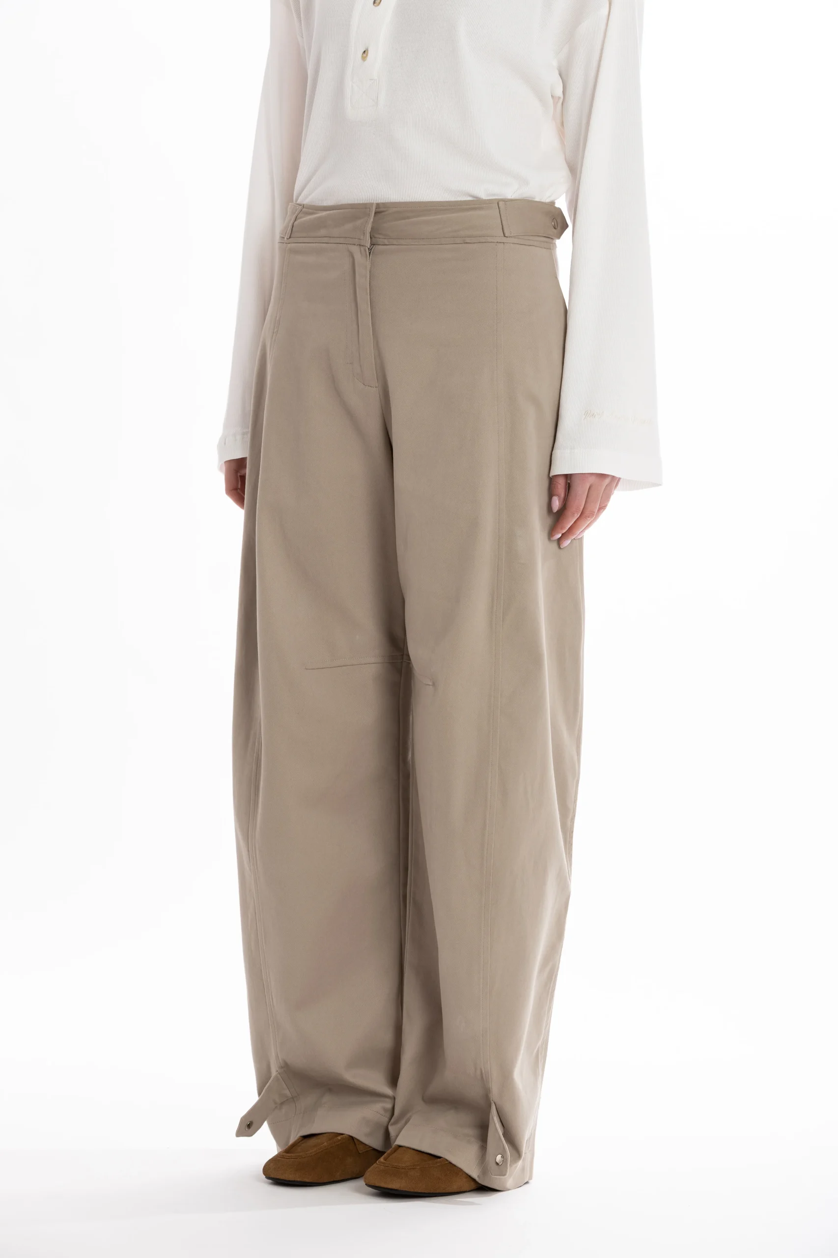 Olimpia è il pantalone balloon della collezione SS26, proposto nella sofisticata tonalità taupe freddo.