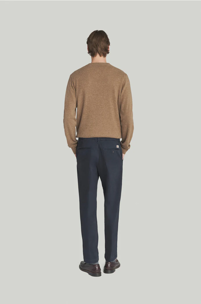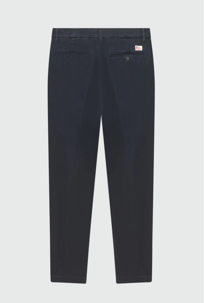 Pantalone chino Conduit in gabardina tinta unita. Vita media con passanti. Due tasche all’americana sul fronte e due tasche a filetto sul retro con bottone. Chiusura con bottone logato e zip. Label Roy Roger’s applicata sul retro. Carrot fit. COMPOSIZIONE: 97% COTONE 3% ELASTAN. CODICI: RRU90120C8700112 – C0048 COLORE: BLU VITA: MEDIA FIT: CARROT