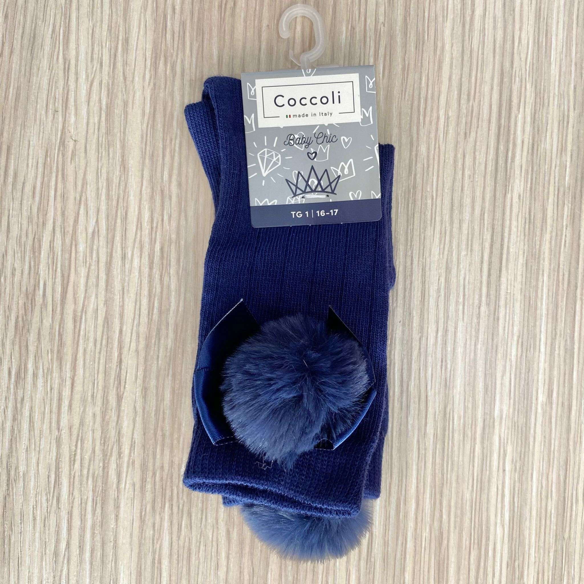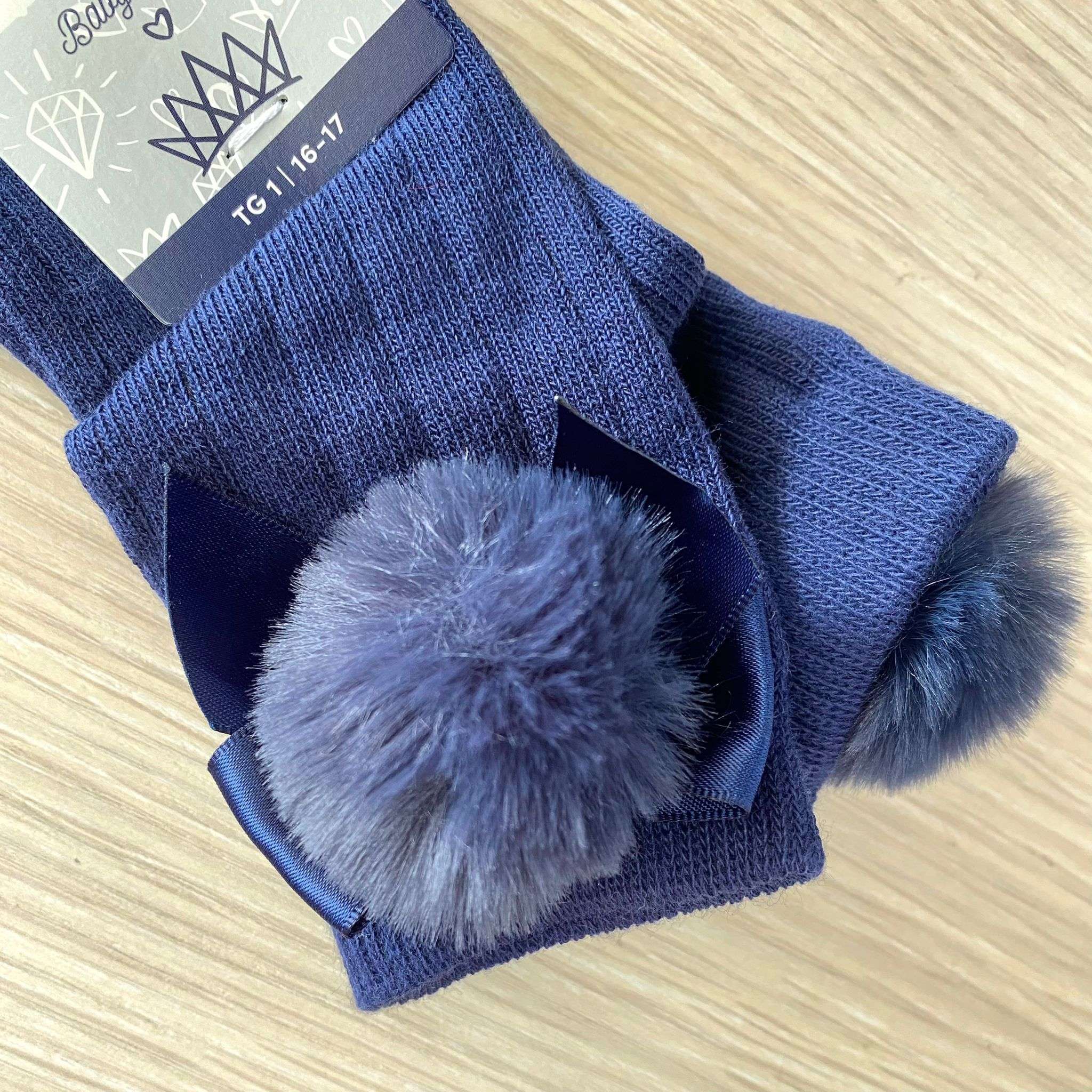 Parigine neonata/bambina in caldo cotone, di colore blu, con applicazione di pompon e fiocchetto in raso. 87% Cotone. 10% Poliammide. 3% Elastan.
