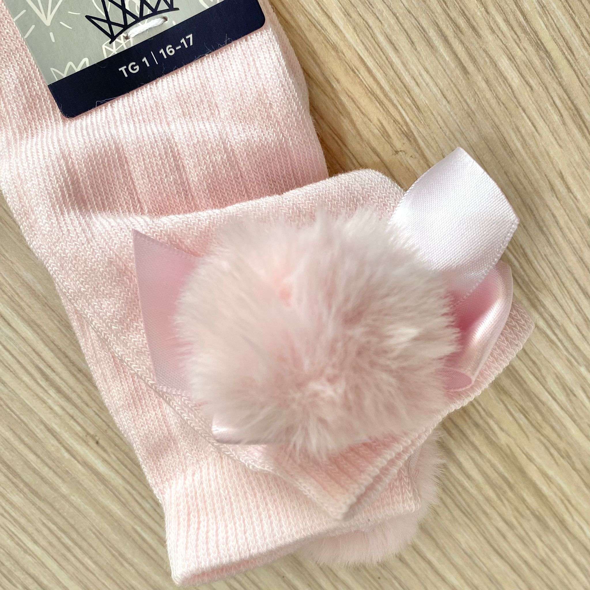 Parigine neonata/bambina in caldo cotone, di colore rosa, con applicazione di pompon e fiocchetto in raso. 87% Cotone. 10% Poliammide. 3% Elastan.