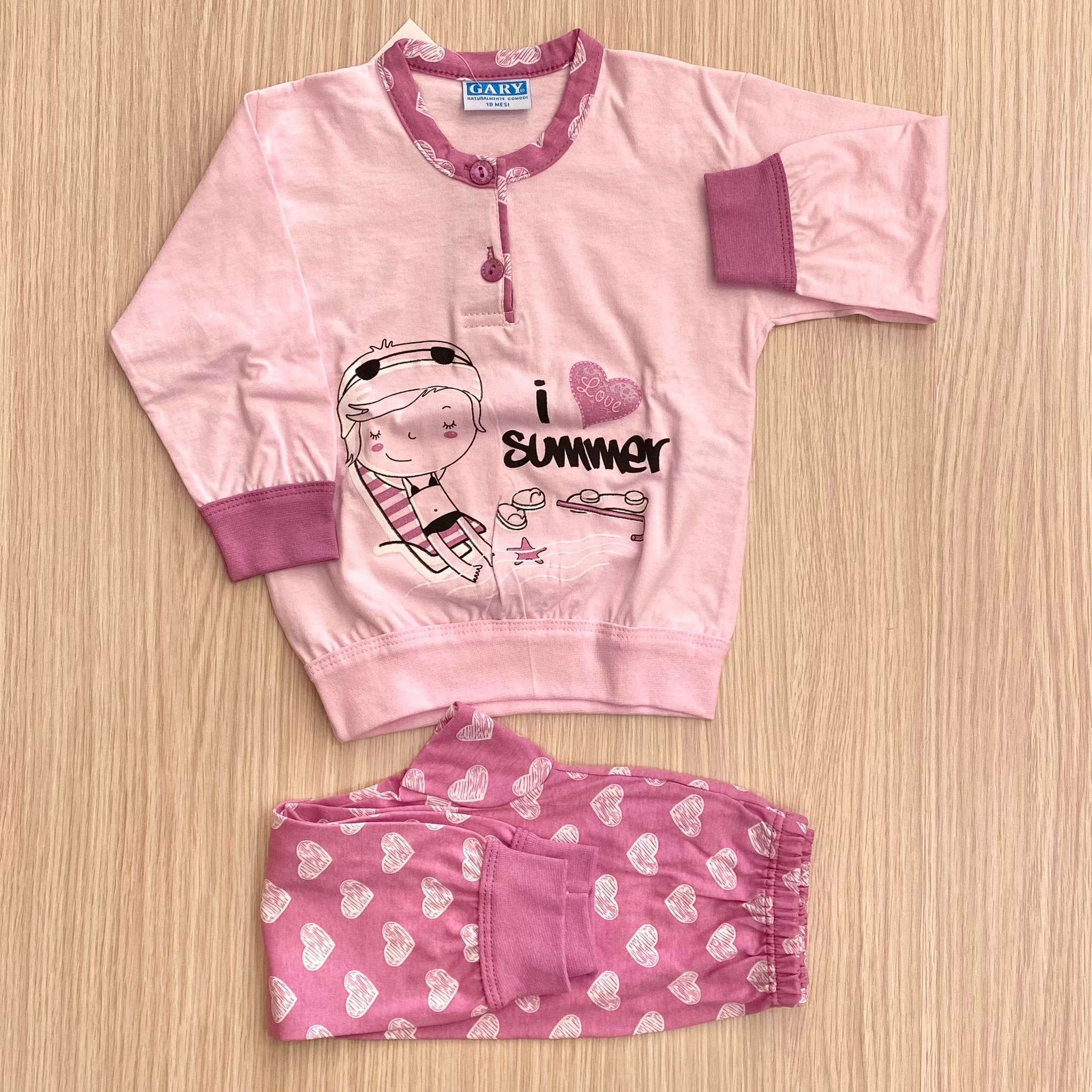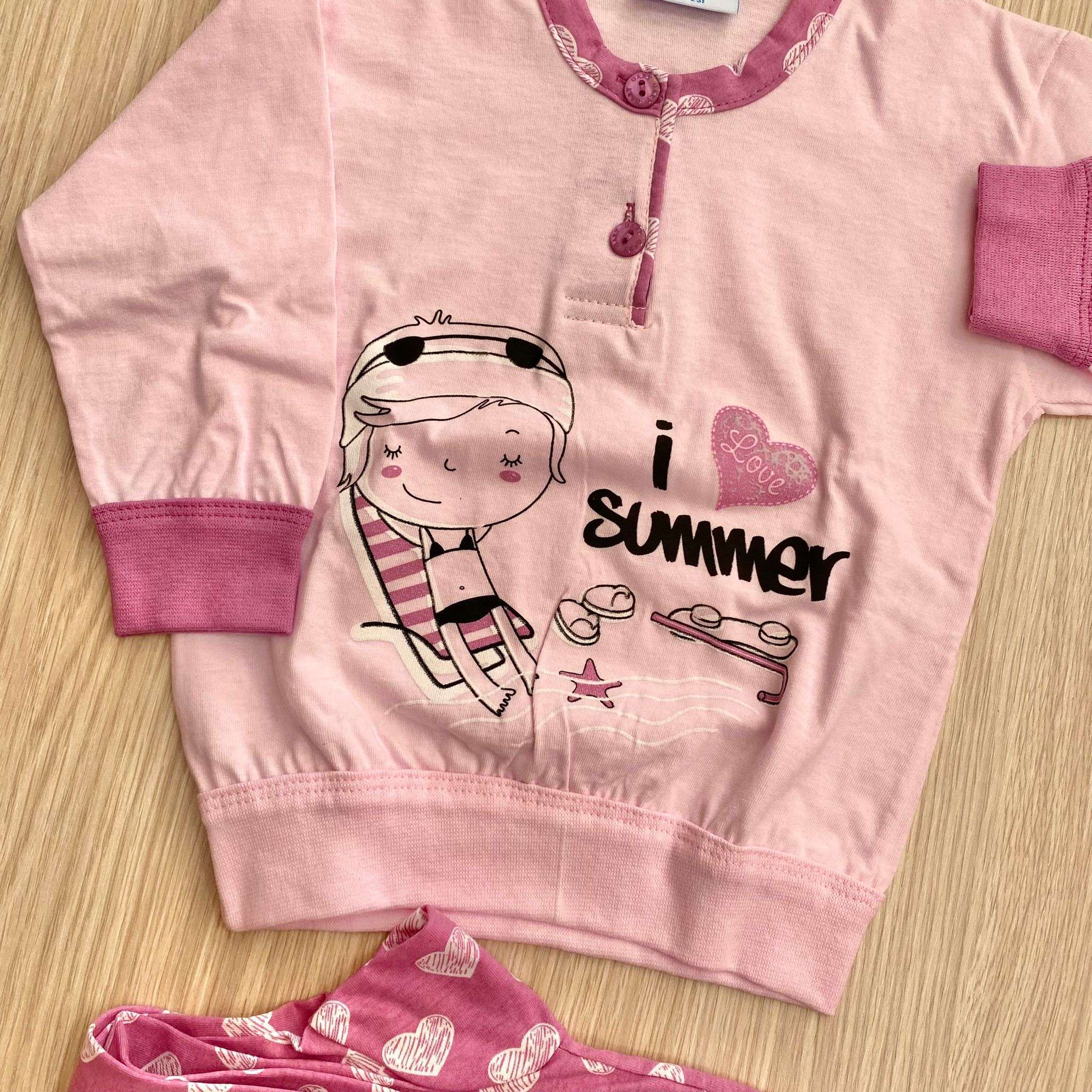 Pigiama bambina in cotone, rosa, con stampa di vari colori. Pigiama con polsini. 18 Mesi: 86 cm. 24 Mesi: 92 cm. 100% Cotone. Made in Italy.