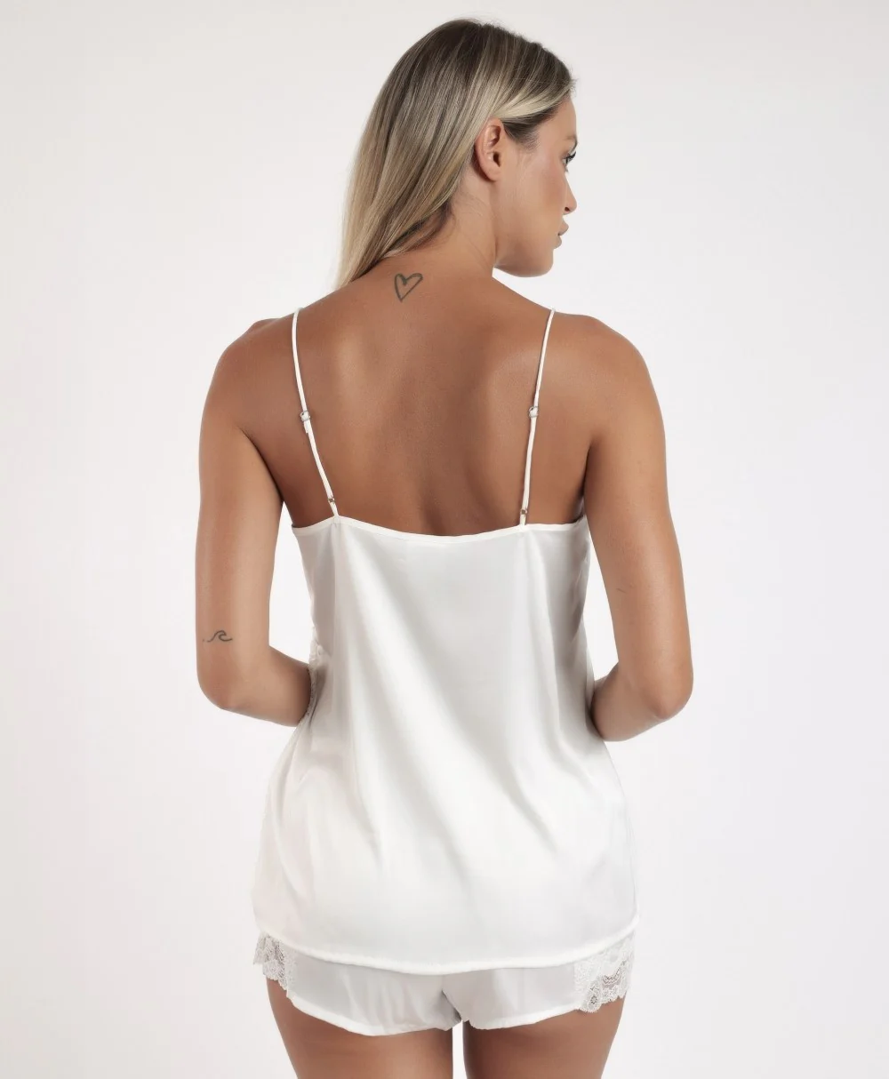 Pigiama ADMAS CLASSIC in raso e guipure con spalline per donna