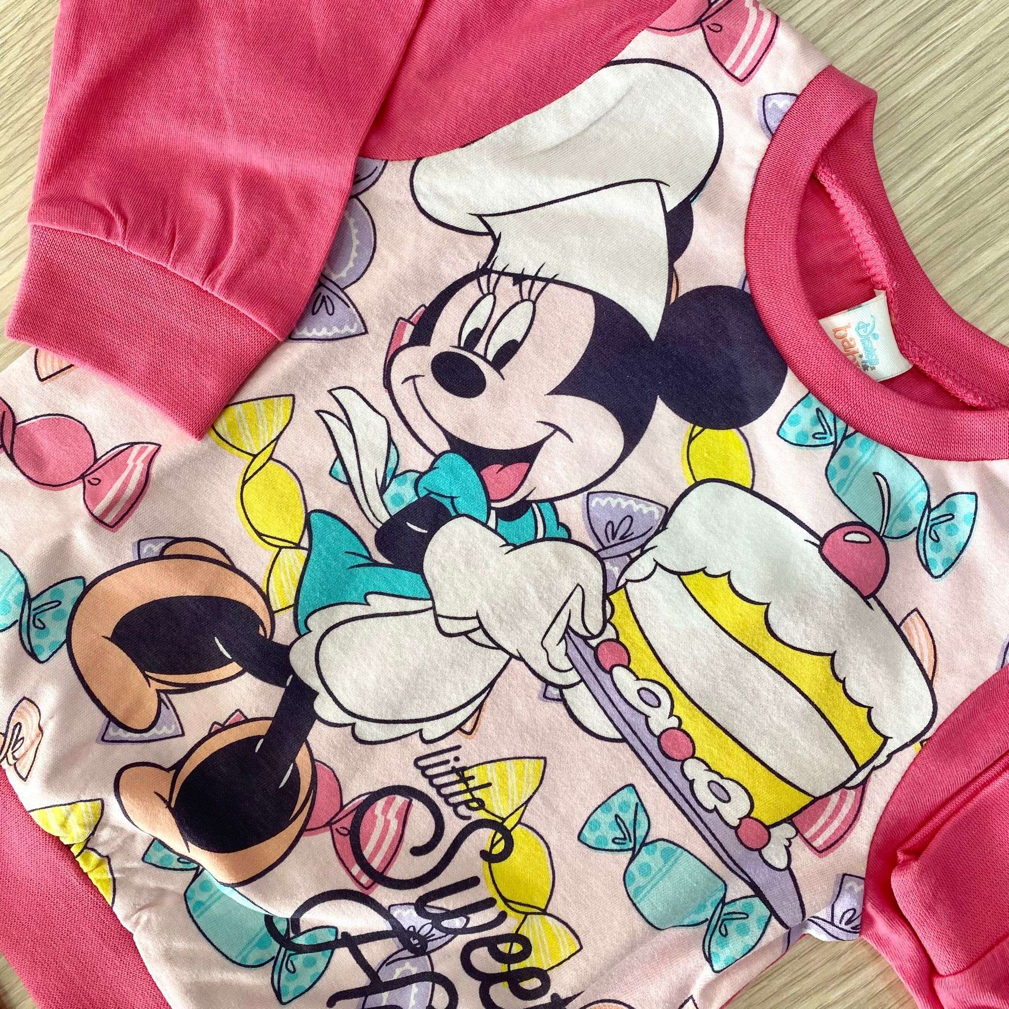 Pigiama due pezzi bambina in cotone, di colore fucsia e rosa, con stampa Minnie di vari colori. 9 Mesi: 74 cm. 100% Cotone.