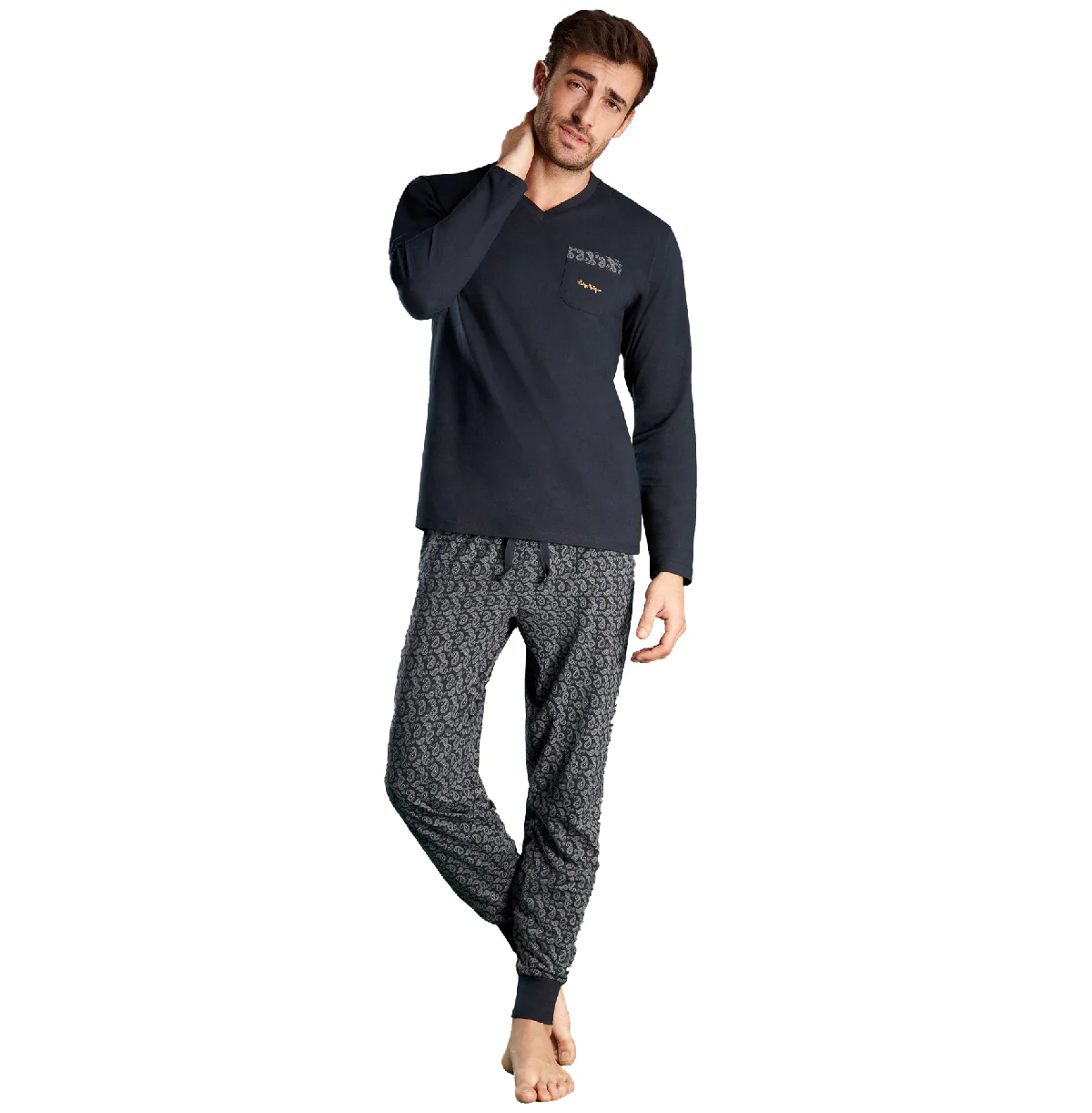 Pigiama con maglia scollo a “v” in cotone jersey pantalone lungo incotone jersey, coulisse e bordo elastico in caviglia COLLEZIONE AUTUNNO INVERNO Guida alla ta Pigiama Philippe Matignon Uomo art. CANNES Pigiama con maglia scollo a “v” in cotone jersey pantalone lungo in flanella con tasche, coulisse e bordo elastico in caviglia