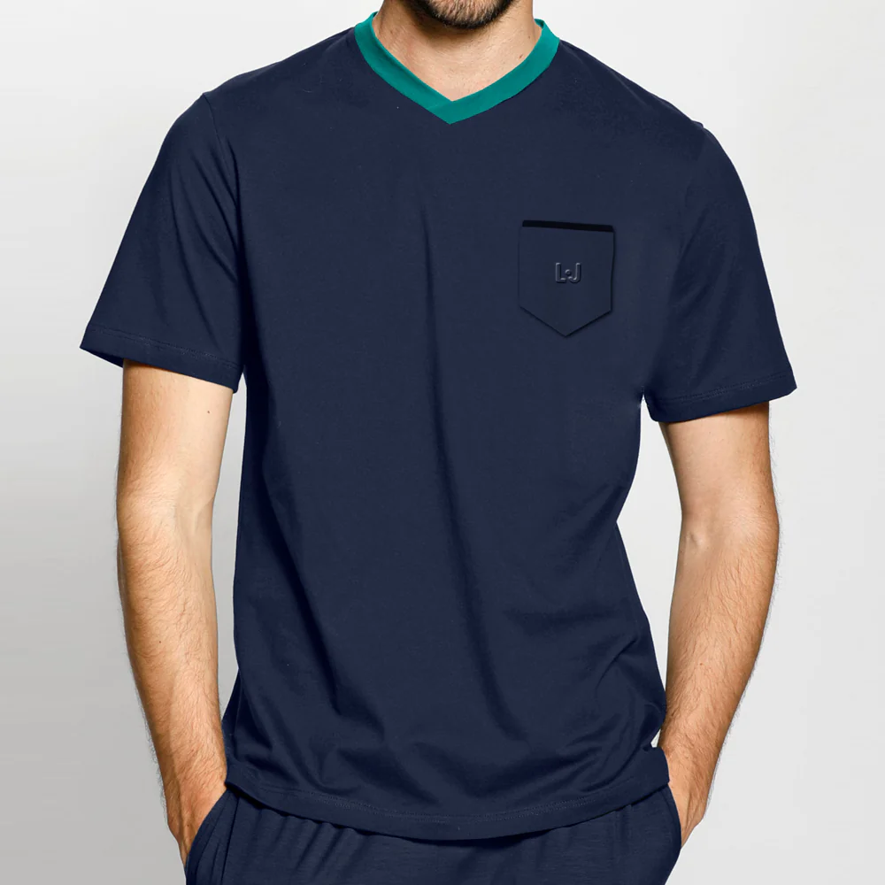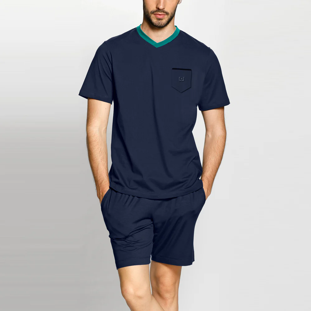 Scopri il pigiama da uomo Liu Jo in blu scuro, perfetto per chi cerca comfort e stile anche nei momenti di relax. Realizzato in morbido cotone elasticizzato, questo completo è composto da una maglia con elegante girocollo e pantaloncini coordinati con vita elasticizzata, per una vestibilità comoda e moderna. Il colore blu scuro con profilo verde a contrasto dona un tocco sofisticato, ideale per ogni stagione. Un capo essenziale per le tue serate a casa o per accompagnarti in viaggio, unendo funzionalità e design firmato Liu Jo.