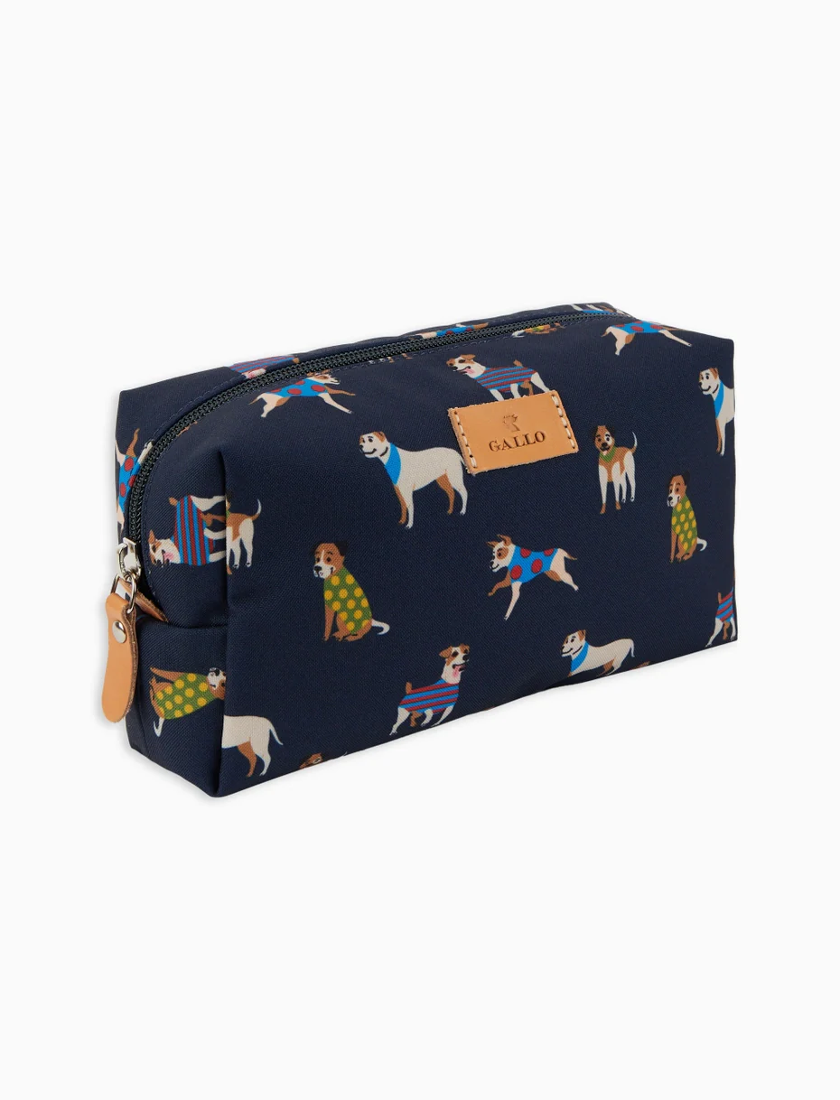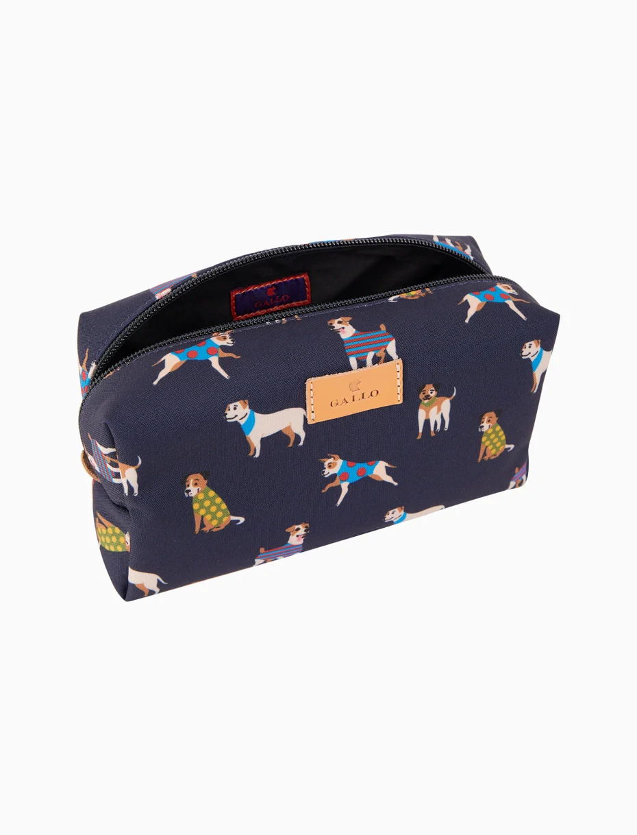 Pochette modello bauletto unisex realizzata in Italia con grande cura per i dettagli. Gli accessori in pelle donano un tocco di eleganza. Pratica ed originale, la fantasia cani sui toni del blu la rende facilissima da abbinare. Gallo: sinonimo di qualità italiana dal 1927.
