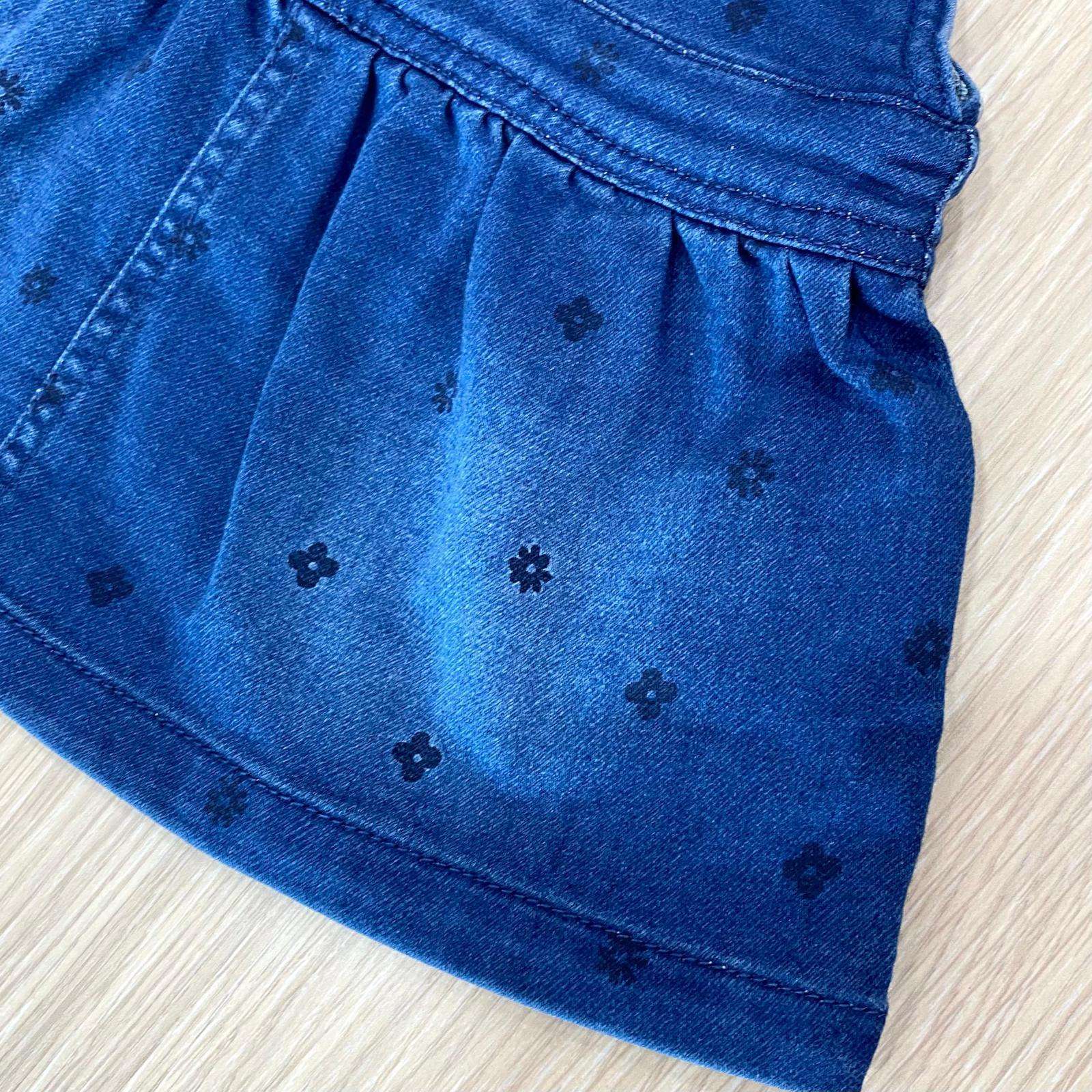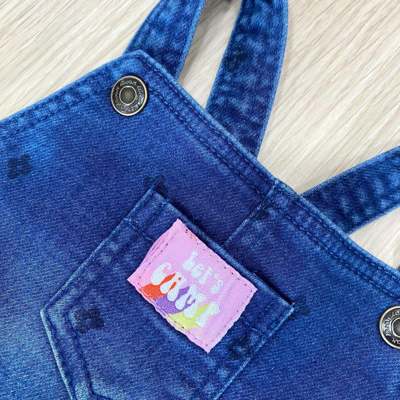 Salopette bambina in denim, in cotone, con bretelline regolabili con due bottoncini. 82% Cotone. 16% Poliestere. 2% Elastane.