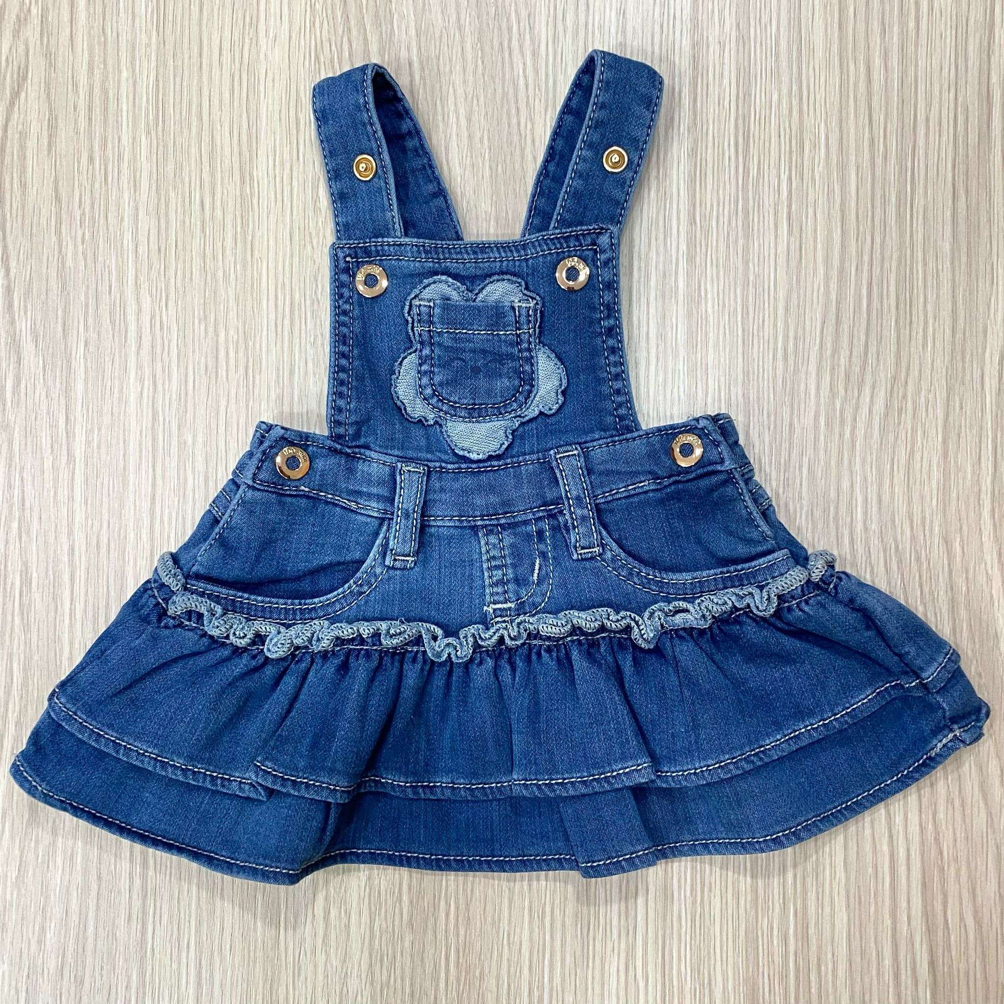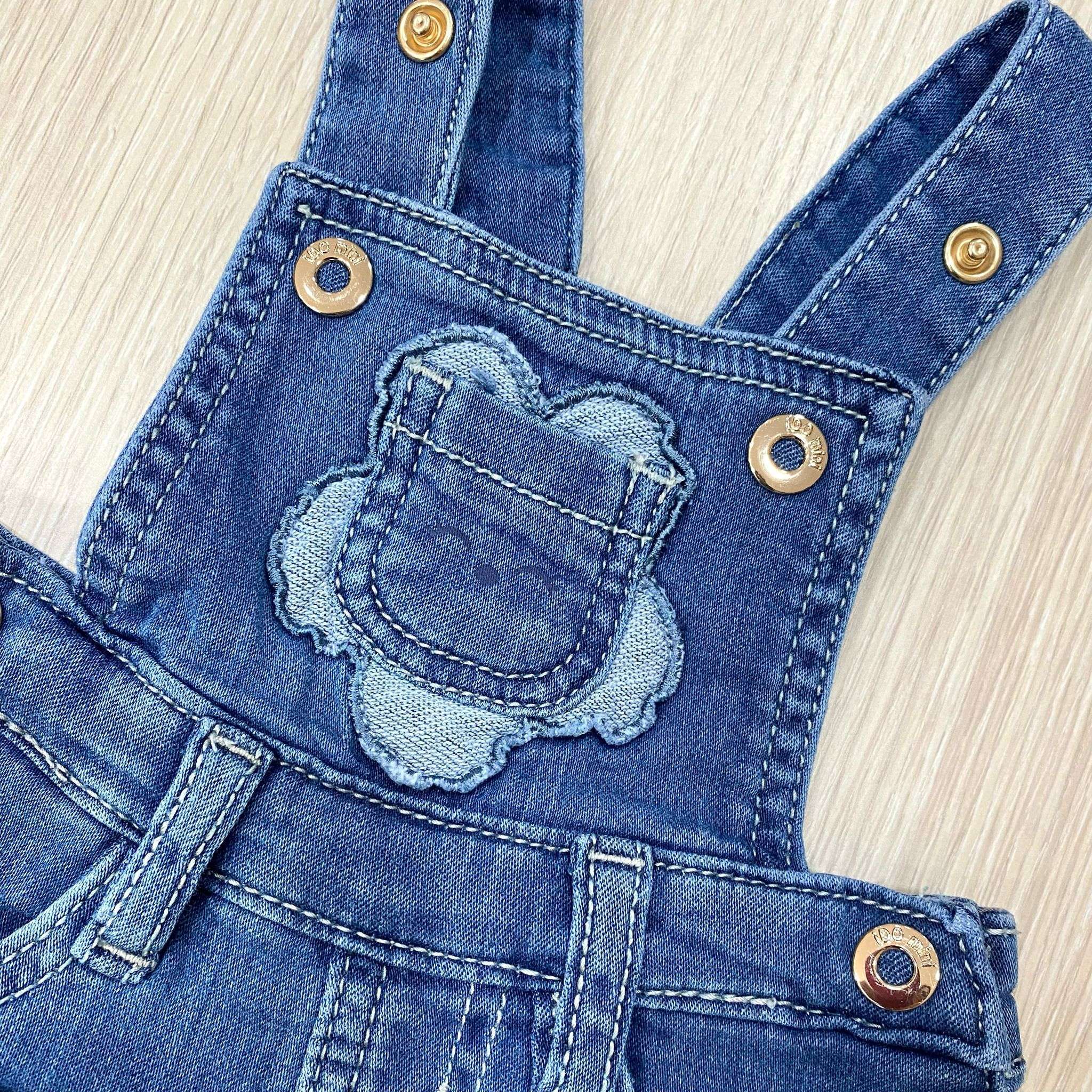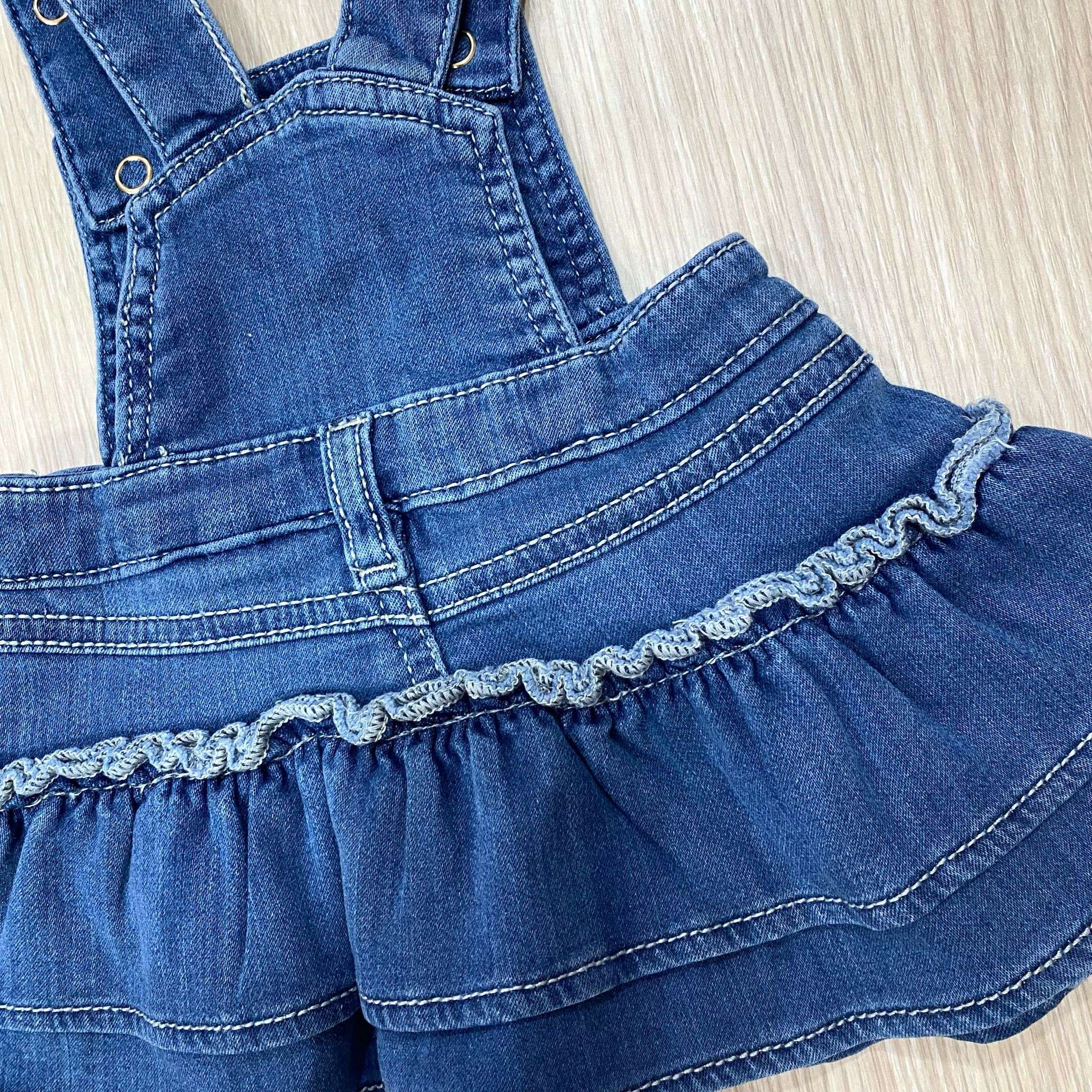 Salopette neonata/bambina in denim, in cotone, bretelle regolabili. Salopette con dettaglio di doppio voilant. 99% Cotone. 1% Elastane.