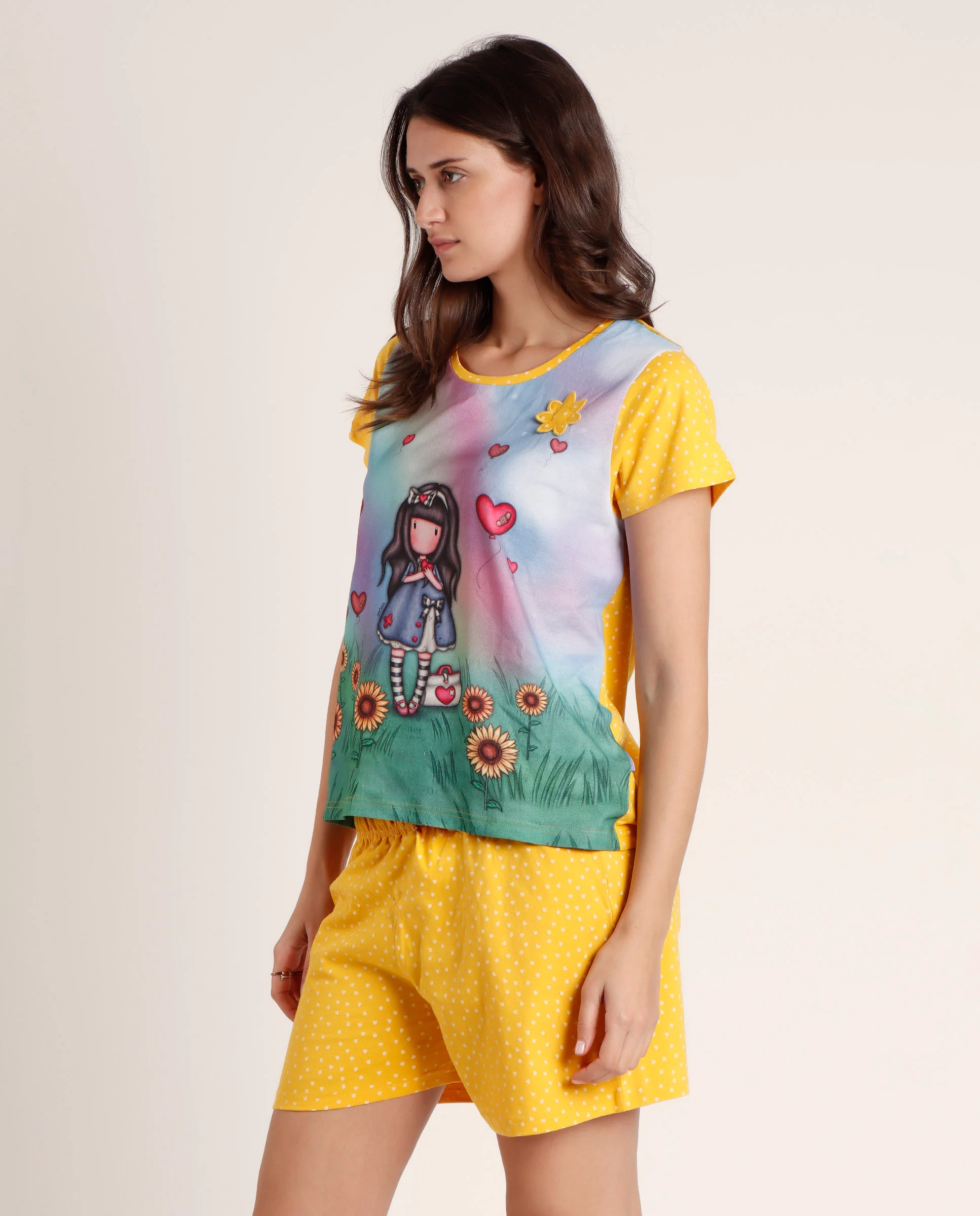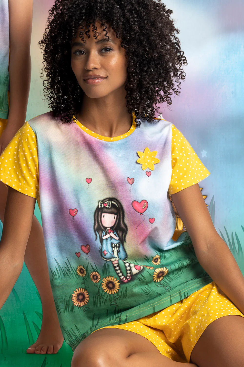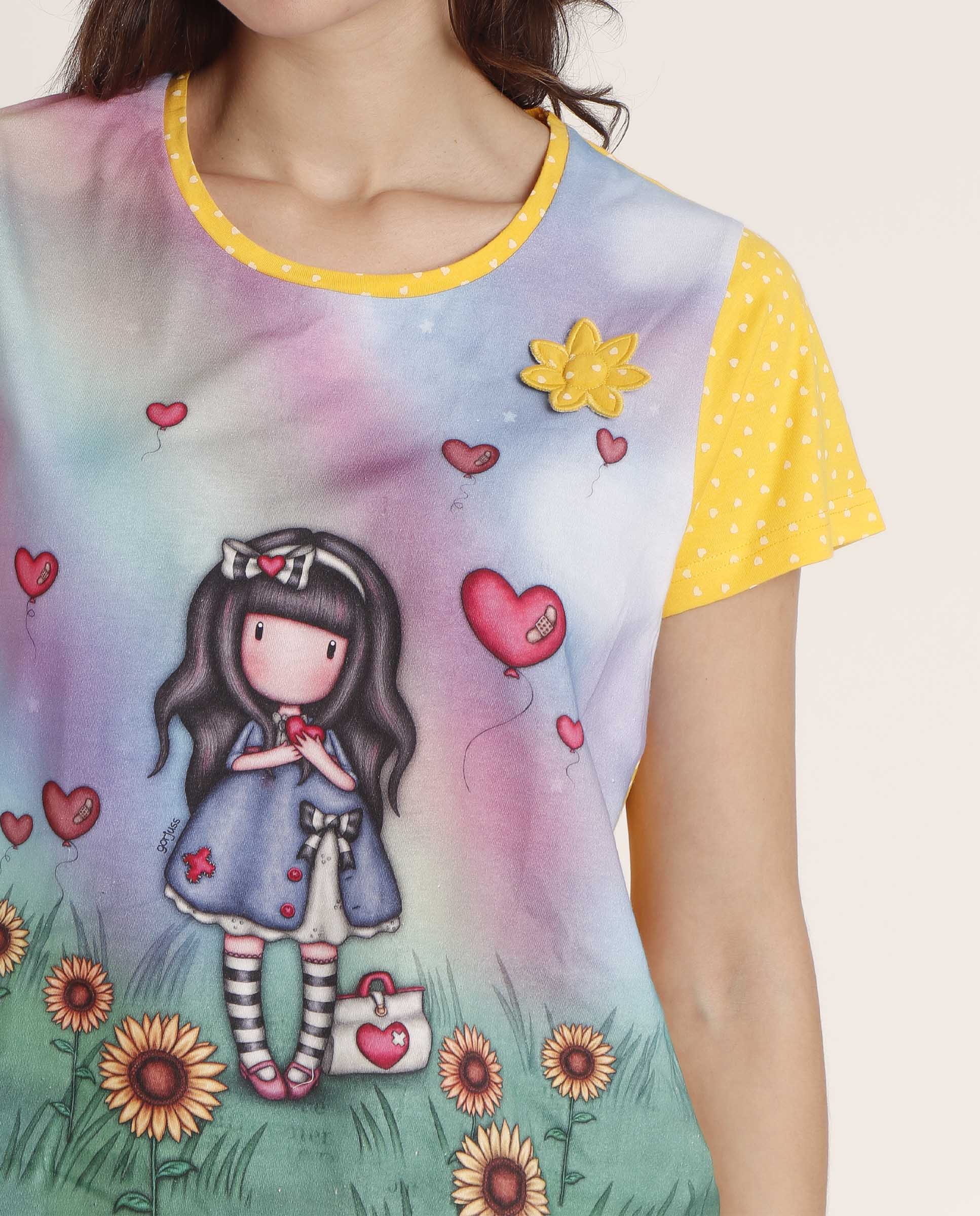 Realizzato con tessuti di alta qualità, questo pigiama coordinato presenta un design ispirato alle famose illustrazioni di Santoro Gorjuss, caratterizzato da dolci dettagli e colori vivaci.