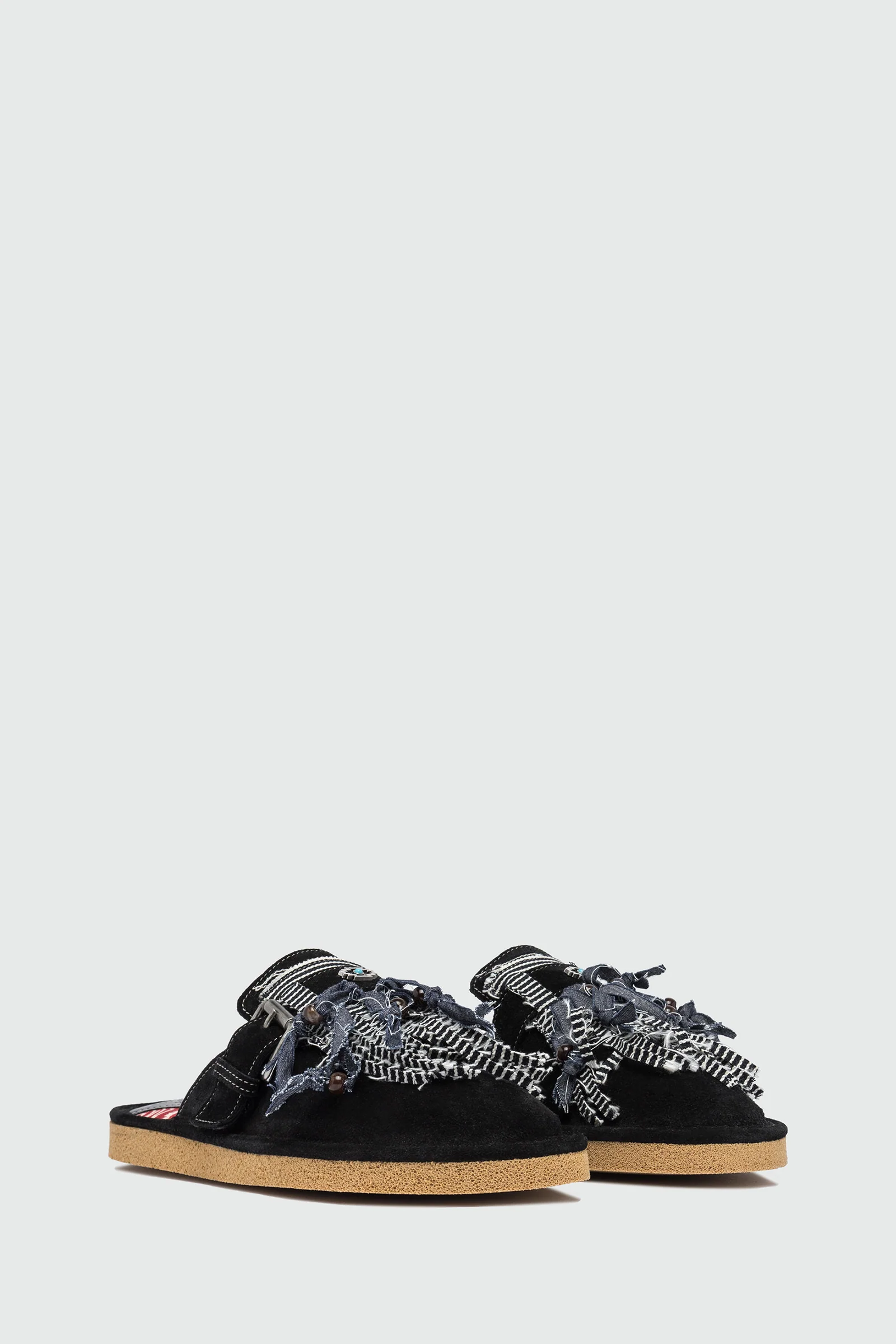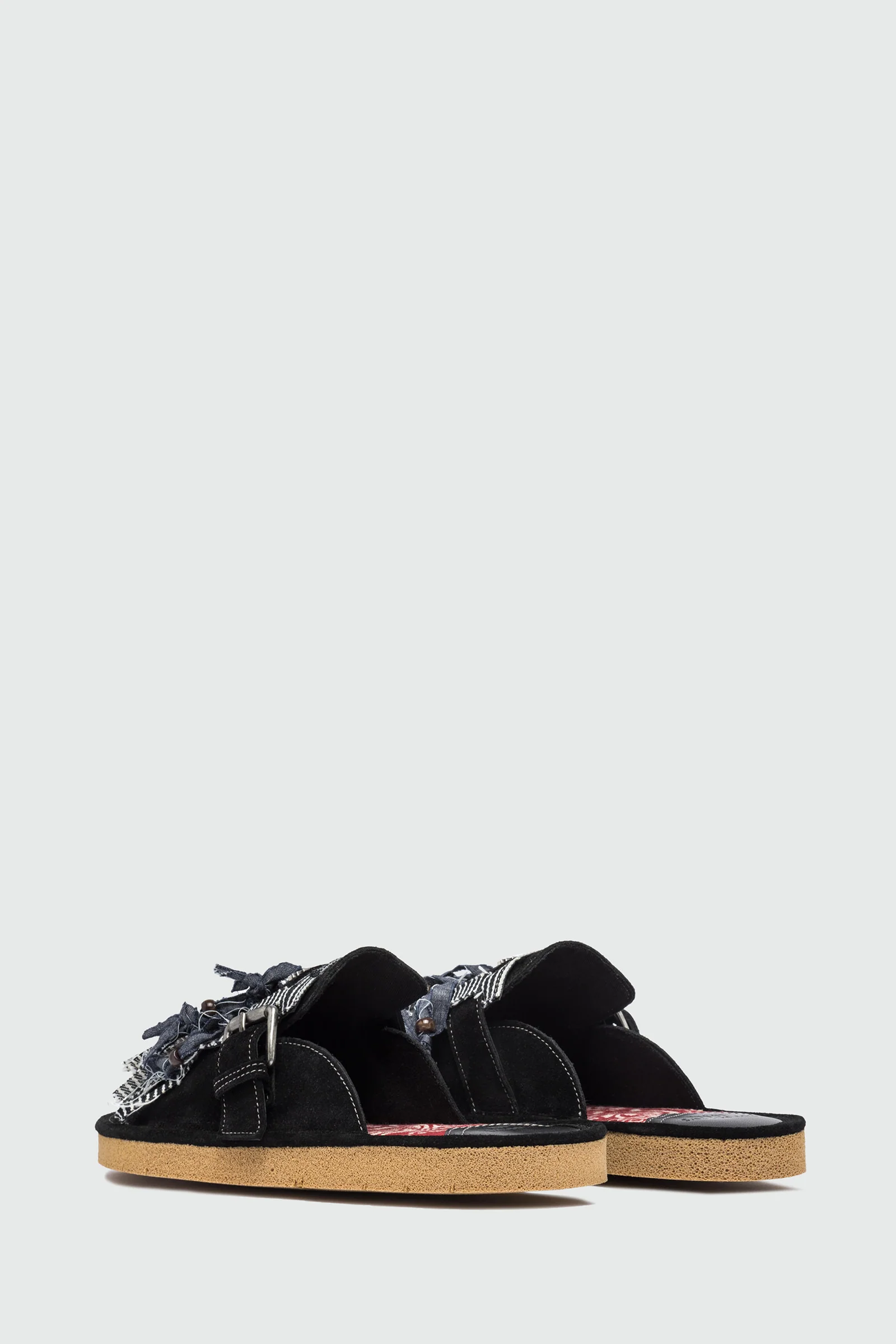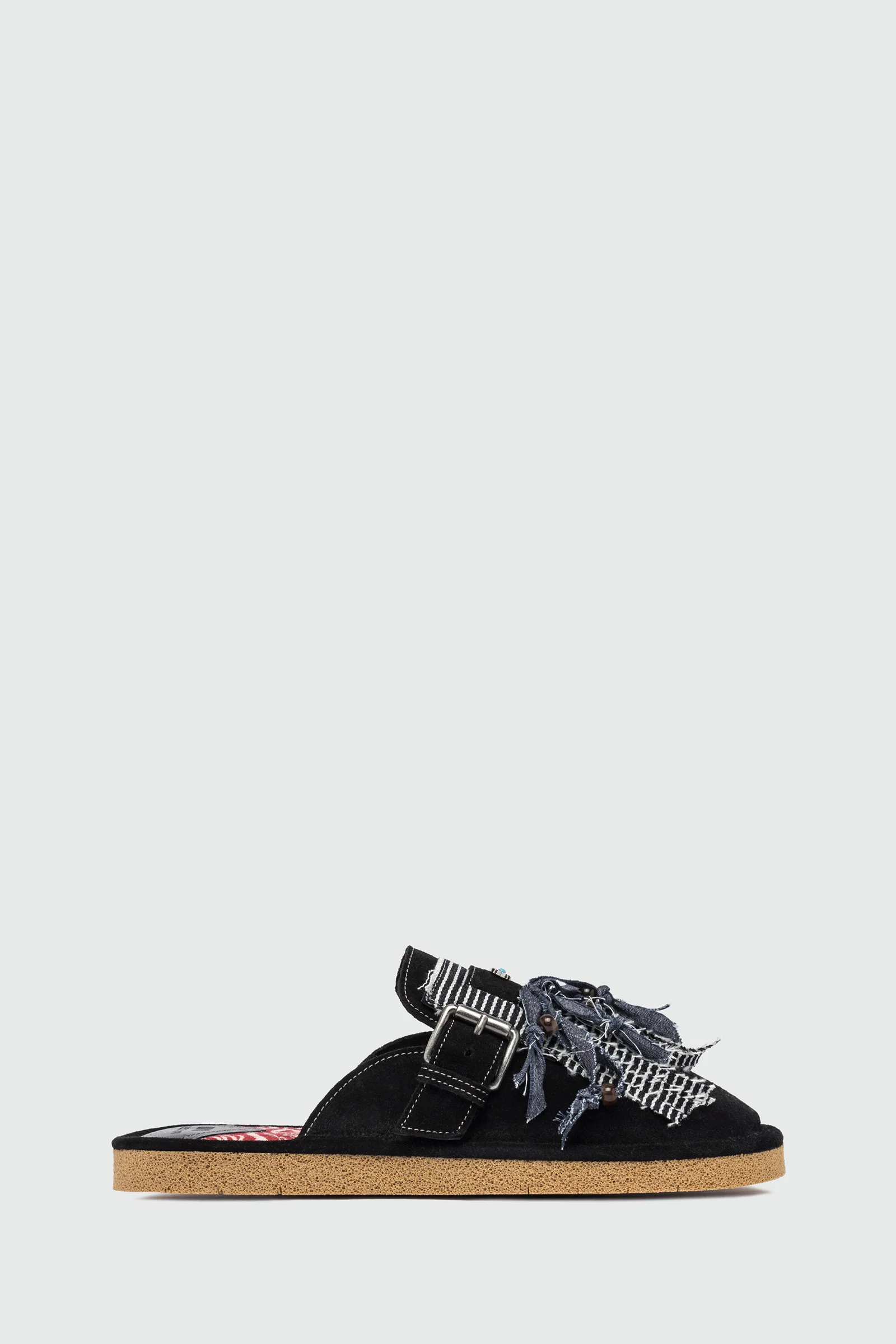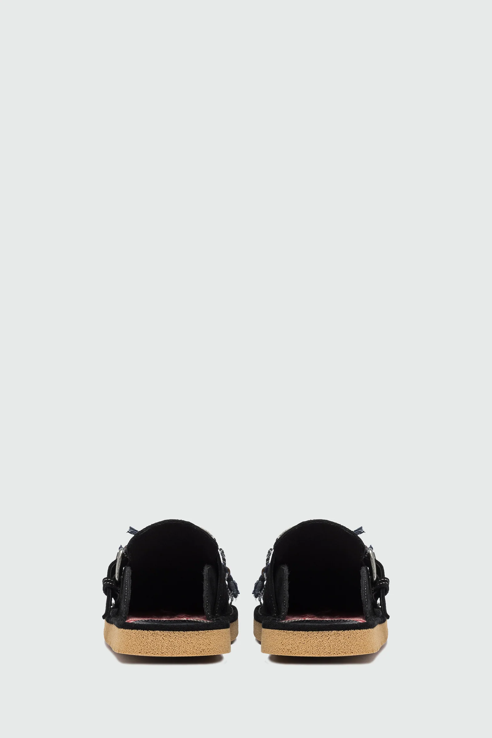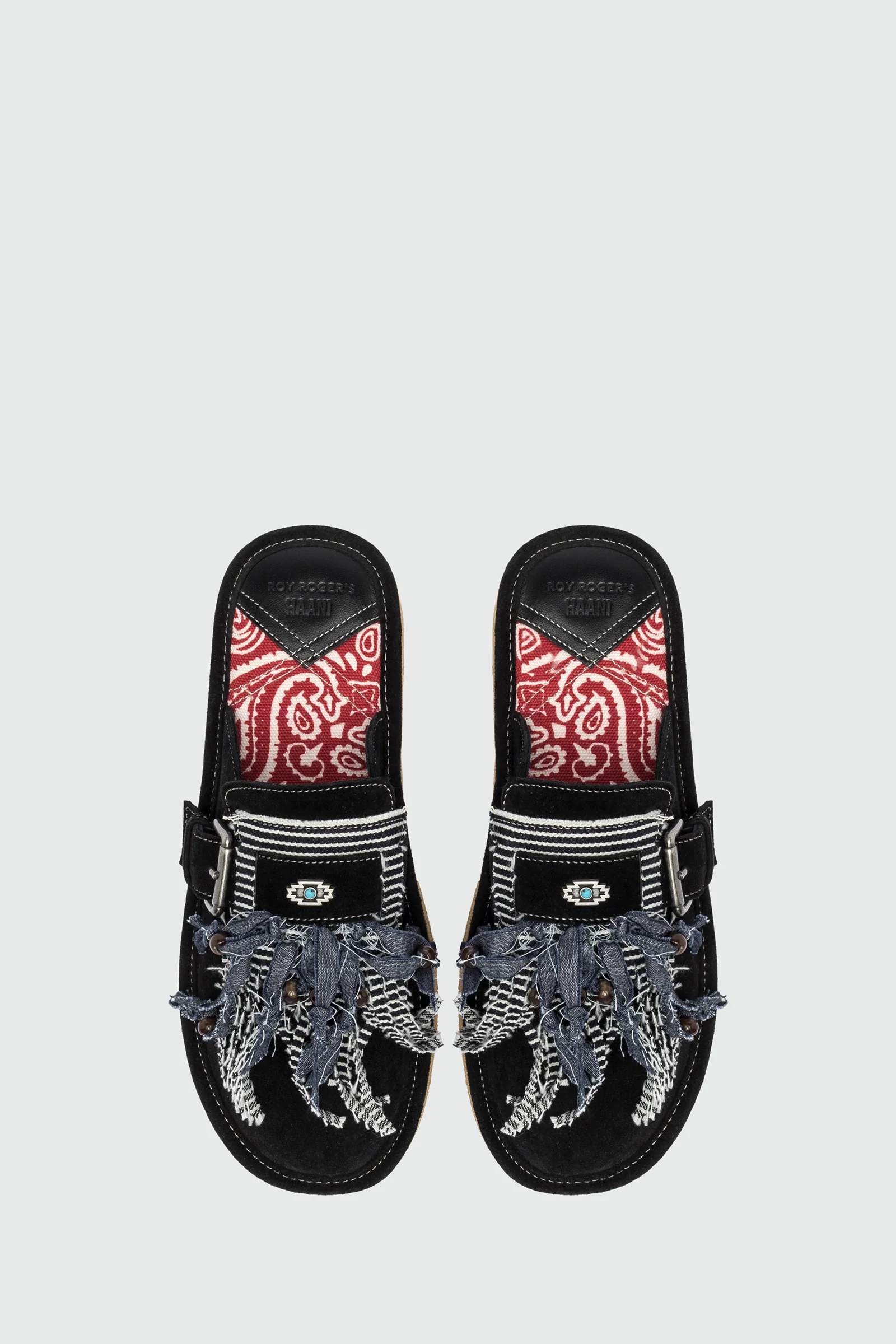 Scarpe dal gusto californiano, nata dalla collaborazione tra Roy Roger’s X Haani. I dettagli che arricchiscono questa calzatura richiamano le texture e i materiali utilizzati all’interno della collezione quali bandane, tessuto rigatino ed inserti in denim.