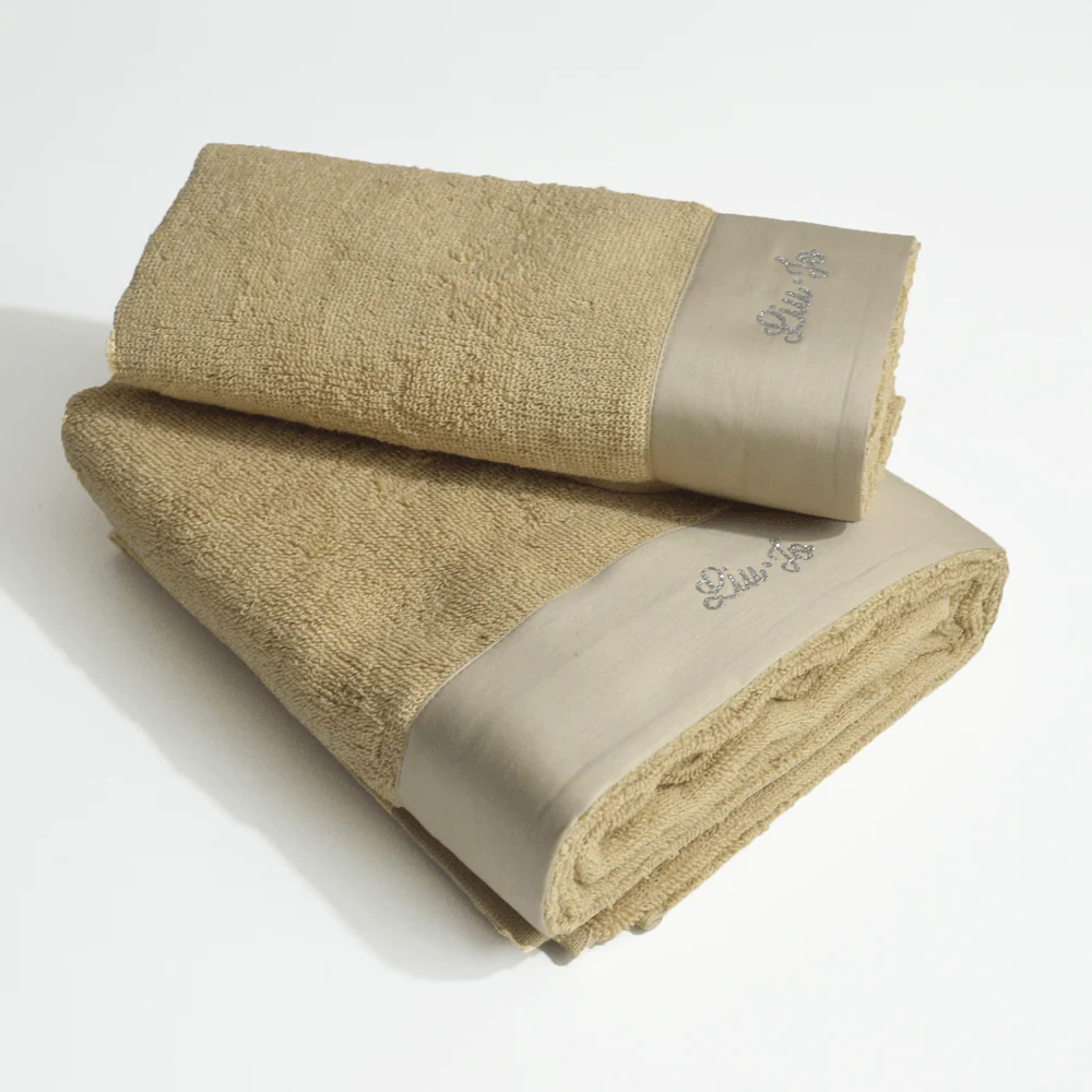 Coppia spugna con balza in raso e logo Liu Jo su balza, disponibile in diverse colorazioni.