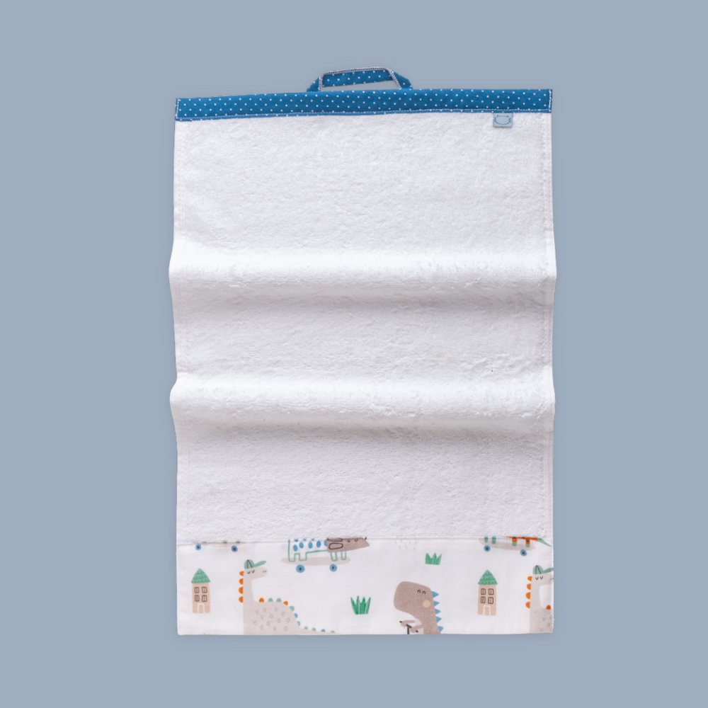 - L’asciugamano è in spugna e ha una pratica asola per essere appeso, che ricordi i gancetti colorati che avevo a scuola!