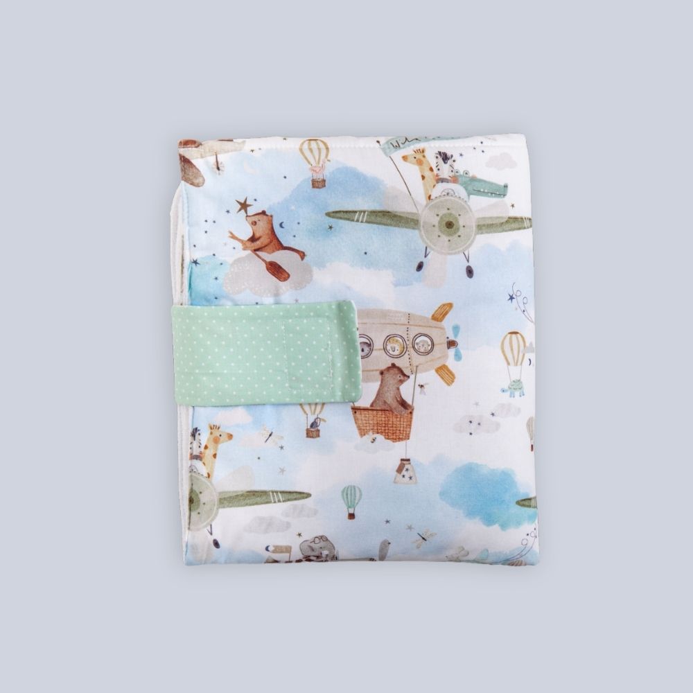 Il set cambio da viaggio “Aeroplani” è il compagno ideale per ogni genitore in movimento! Pensato per rendere più pratici i cambi fuori casa, questo set è realizzato con materiali di alta qualità e un design compatto e funzionale.