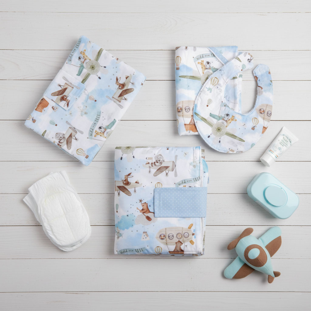 Set cambio neonato “Aeroplani”: Il kit perfetto per i cambi fuori casa