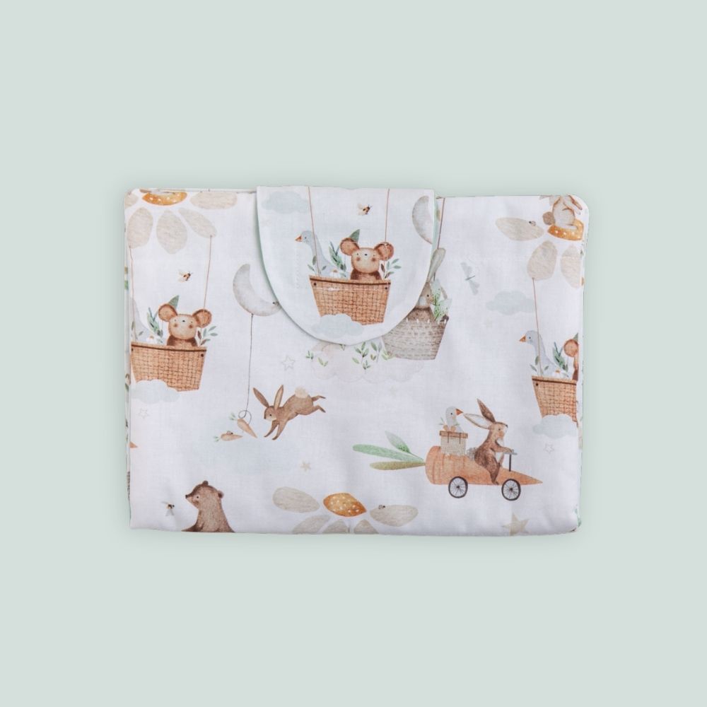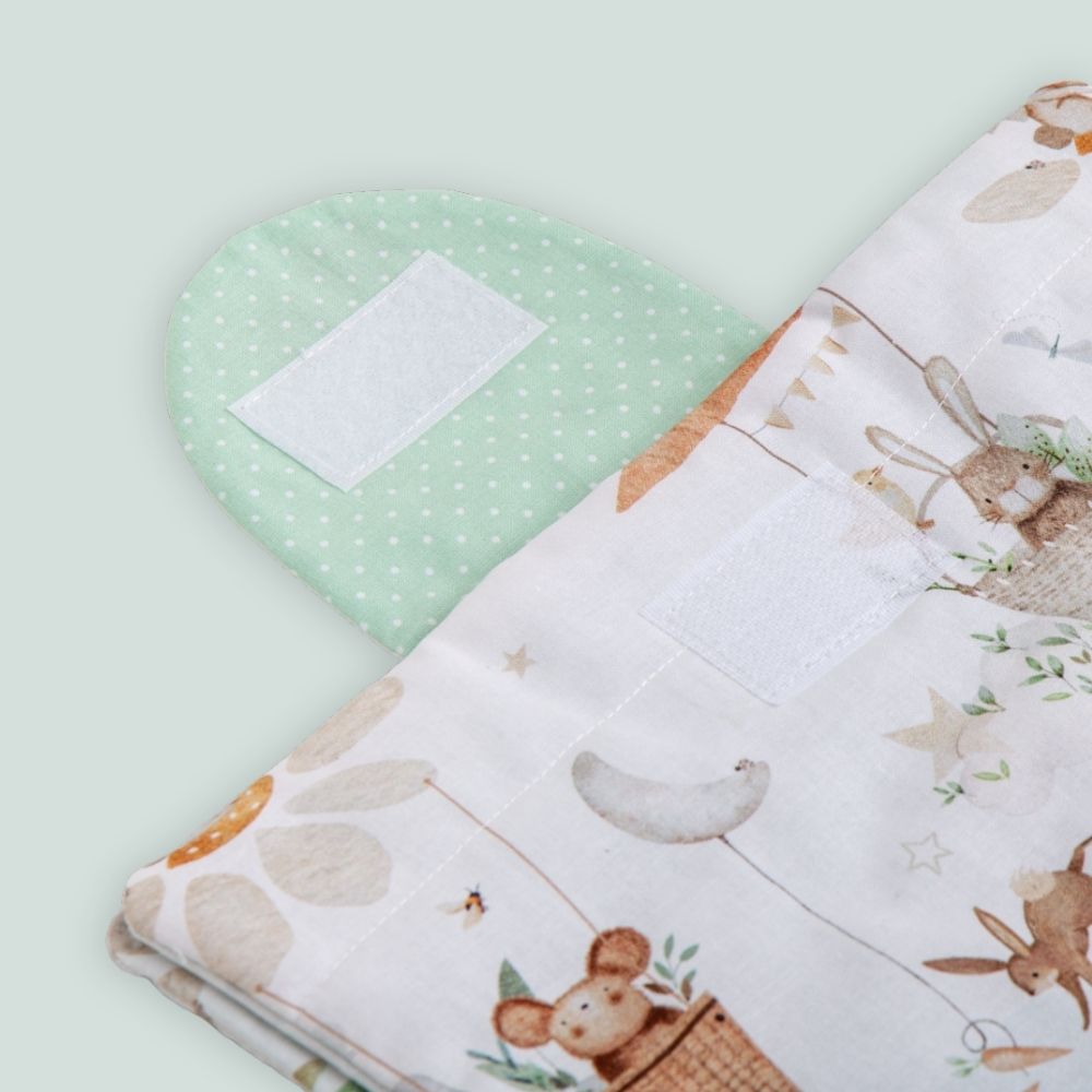Il set cambio da viaggio “Coniglietti” è il compagno ideale per ogni genitore in movimento! Pensato per rendere più pratici i cambi fuori casa, questo set è realizzato con materiali di alta qualità e un design compatto e funzionale.