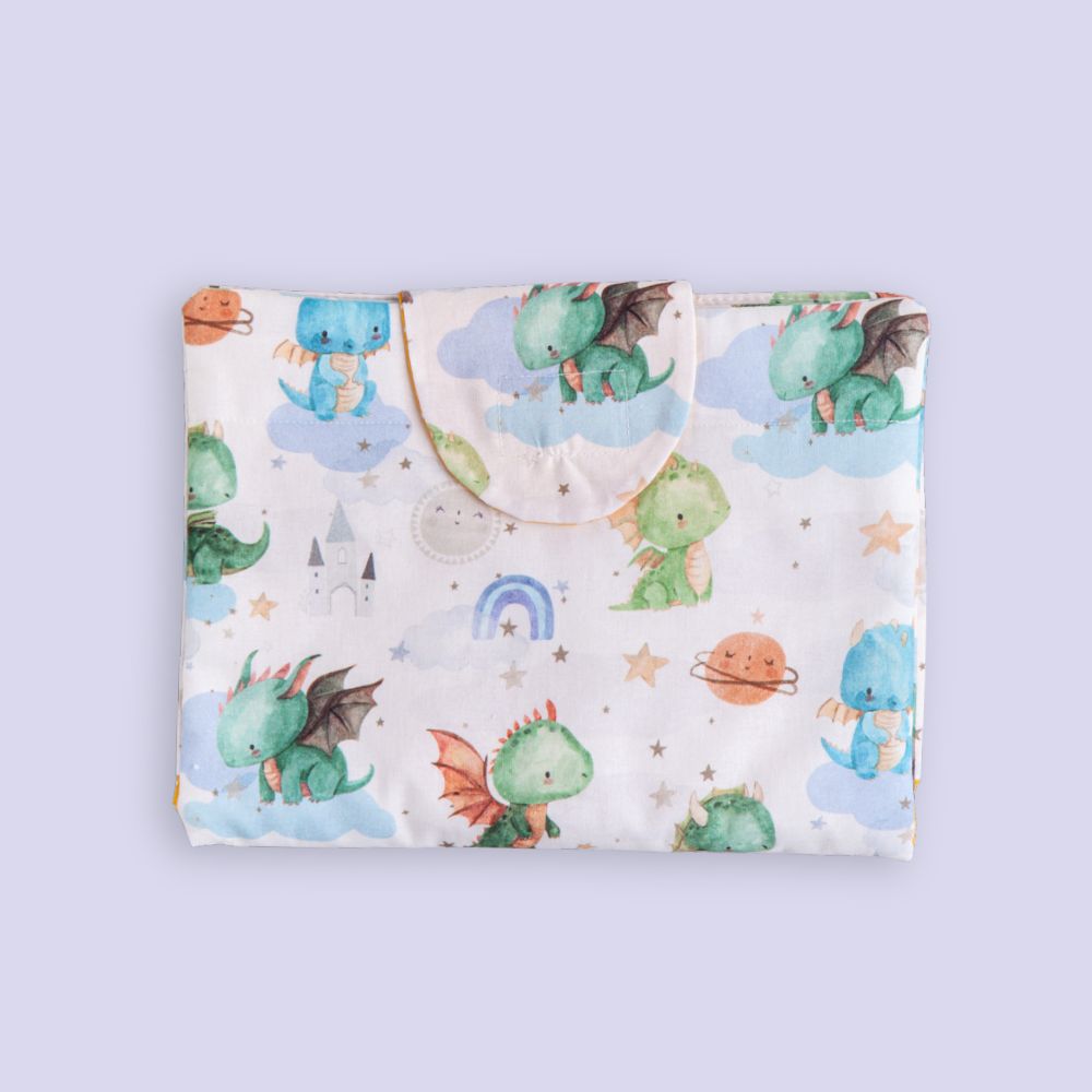 Il set cambio da viaggio “Draghetti” è il compagno ideale per ogni genitore in movimento! Pensato per rendere più pratici i cambi fuori casa, questo set è realizzato con materiali di alta qualità e un design compatto e funzionale.