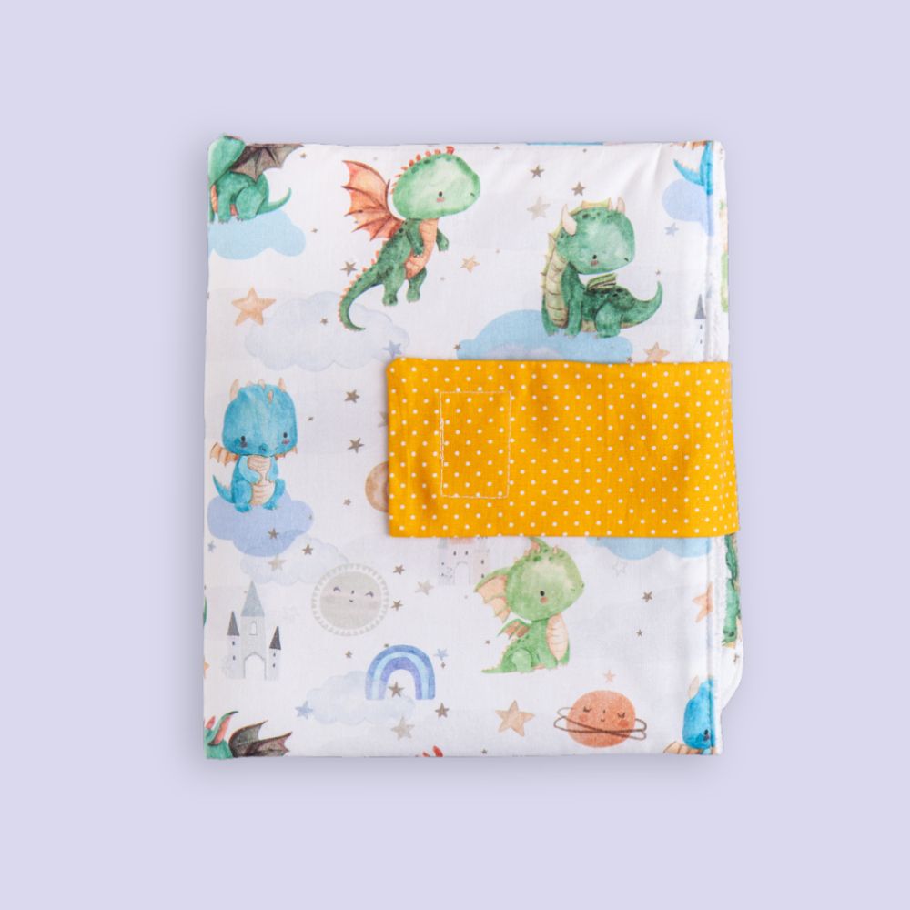 Set cambio neonato “Draghetti” composto da: Fasciatoio portatile – Leggero, impermeabile e facile da pulire. Perfetto per il cambio ovunque!Porta pannolini – Organizza pannolini e salviette in un unico posto, sempre a portata di mano.Bavaglino assorbente – Morbido, super assorbente e con chiusura facile.Lavetta multiuso – Piccola, assorbente e pratica per ogni emergenza.
