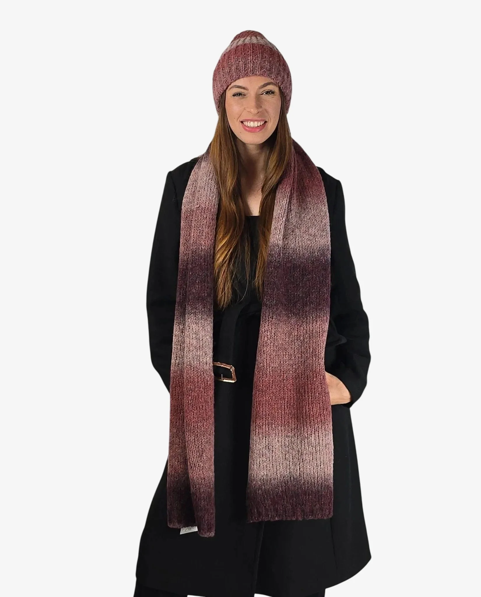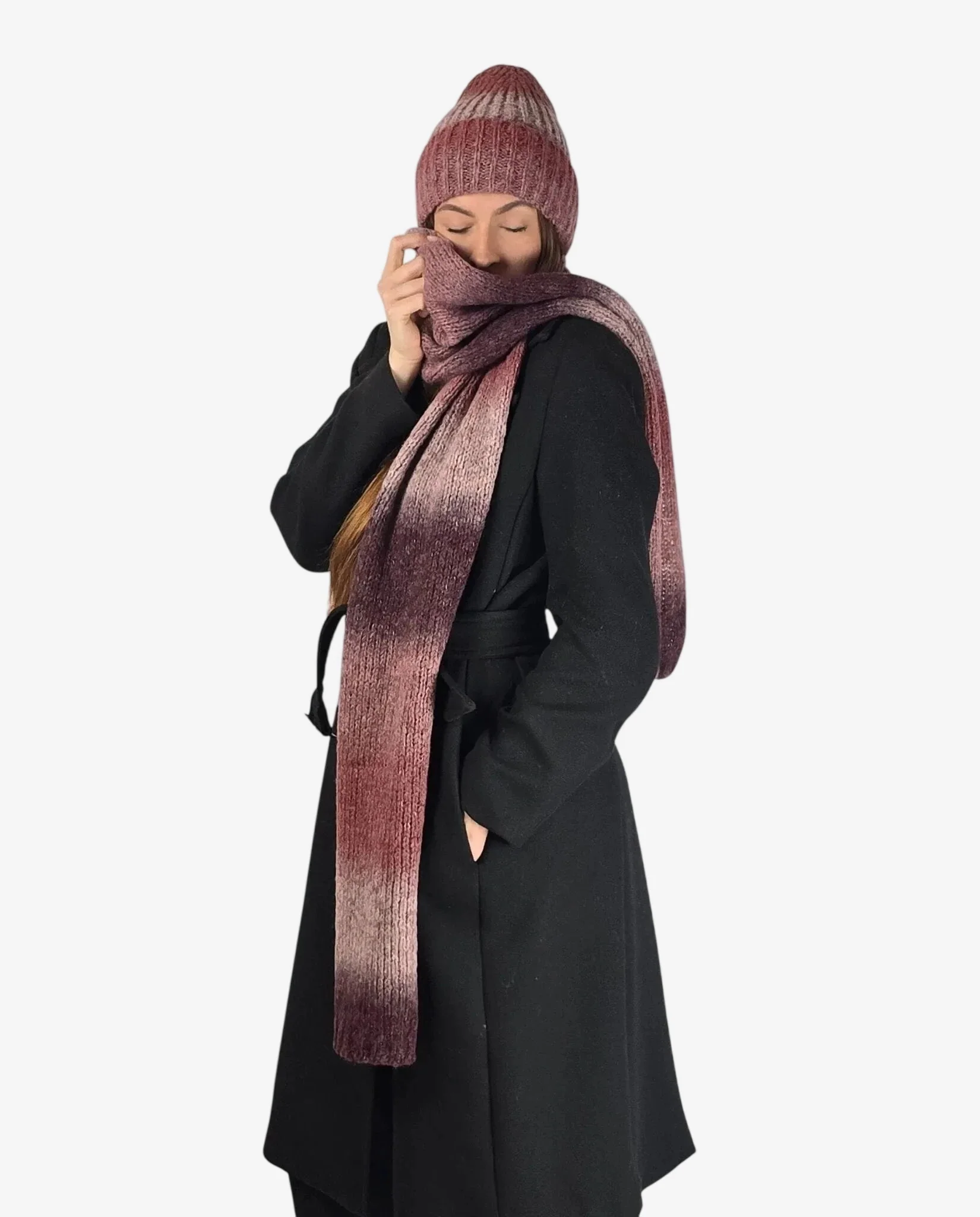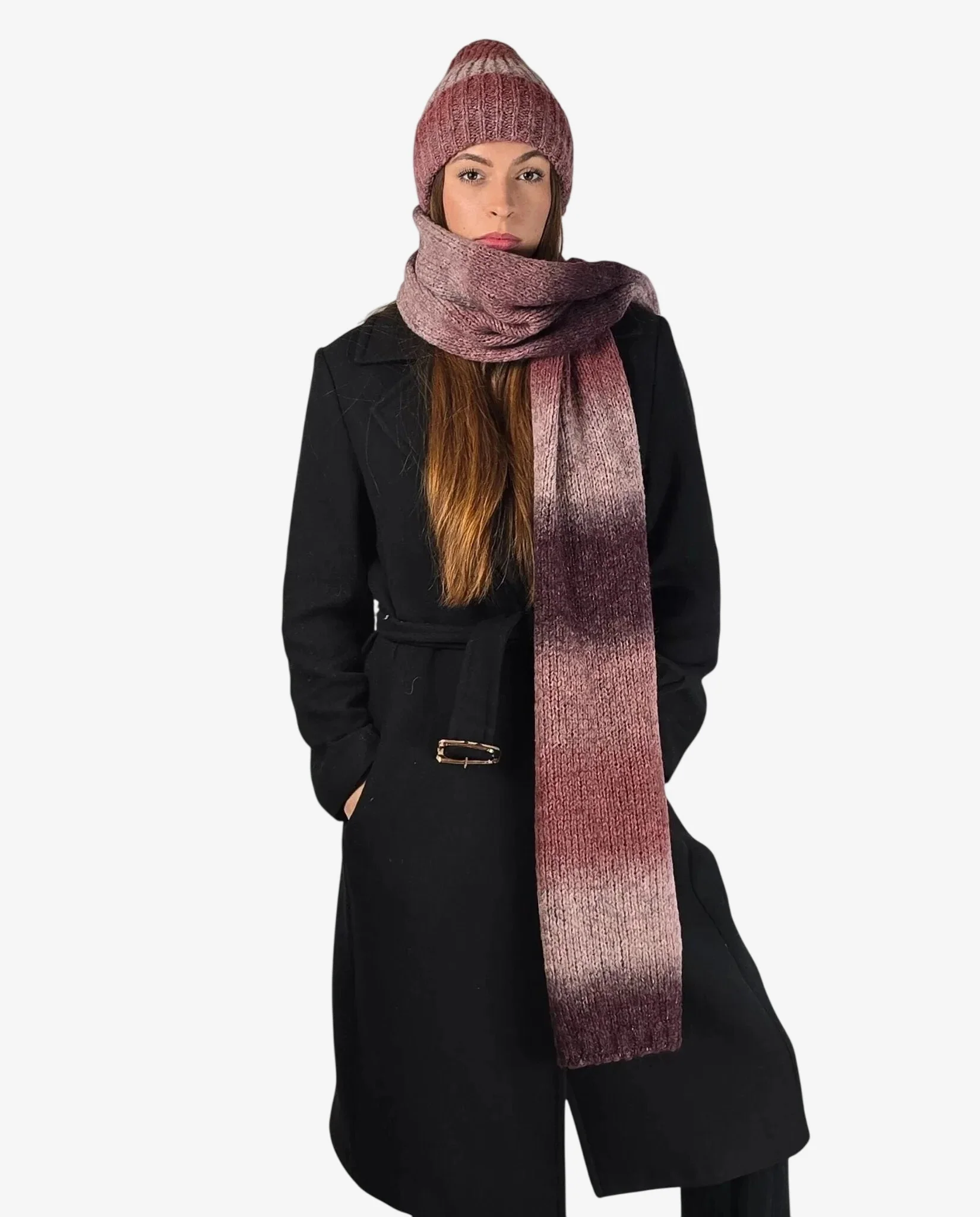 Set donna coordinato sciarpa e cuffia cipolla sfumato ombré con lana, perfetto per l’inverno con stile e calore.