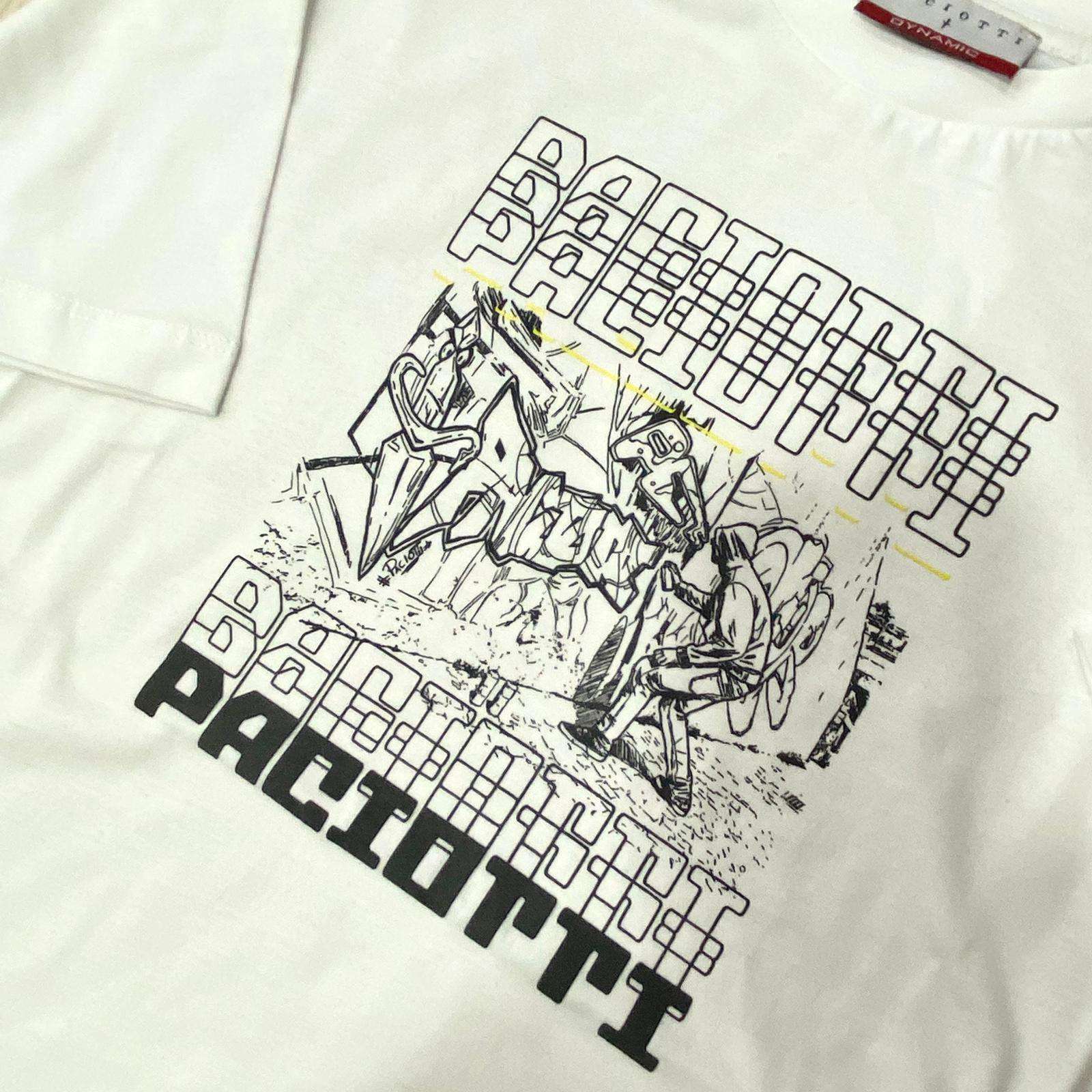 T-shirt Ragazzo Paciotti – Modello Over con Stampa Grafica. Dal carattere urbano e contemporaneo, questa t-shirt da ragazzo firmata Paciotti è pensata per chi ama distinguersi con stile. Il modello over garantisce una vestibilità moderna e rilassata, perfetta per creare look streetwear di tendenza. Realizzata in morbido cotone, offre comfort e traspirabilità ideali per l’uso quotidiano. La maxi stampa frontale con lettering ripetuto e illustrazione centrale dona un forte impatto visivo, rendendo il capo protagonista dell’outfit. Perfetta da abbinare a jeans, cargo o bermuda, è una t-shirt versatile che unisce personalità e praticità. Dettagli prodotto: • T-shirt da ragazzo modello…