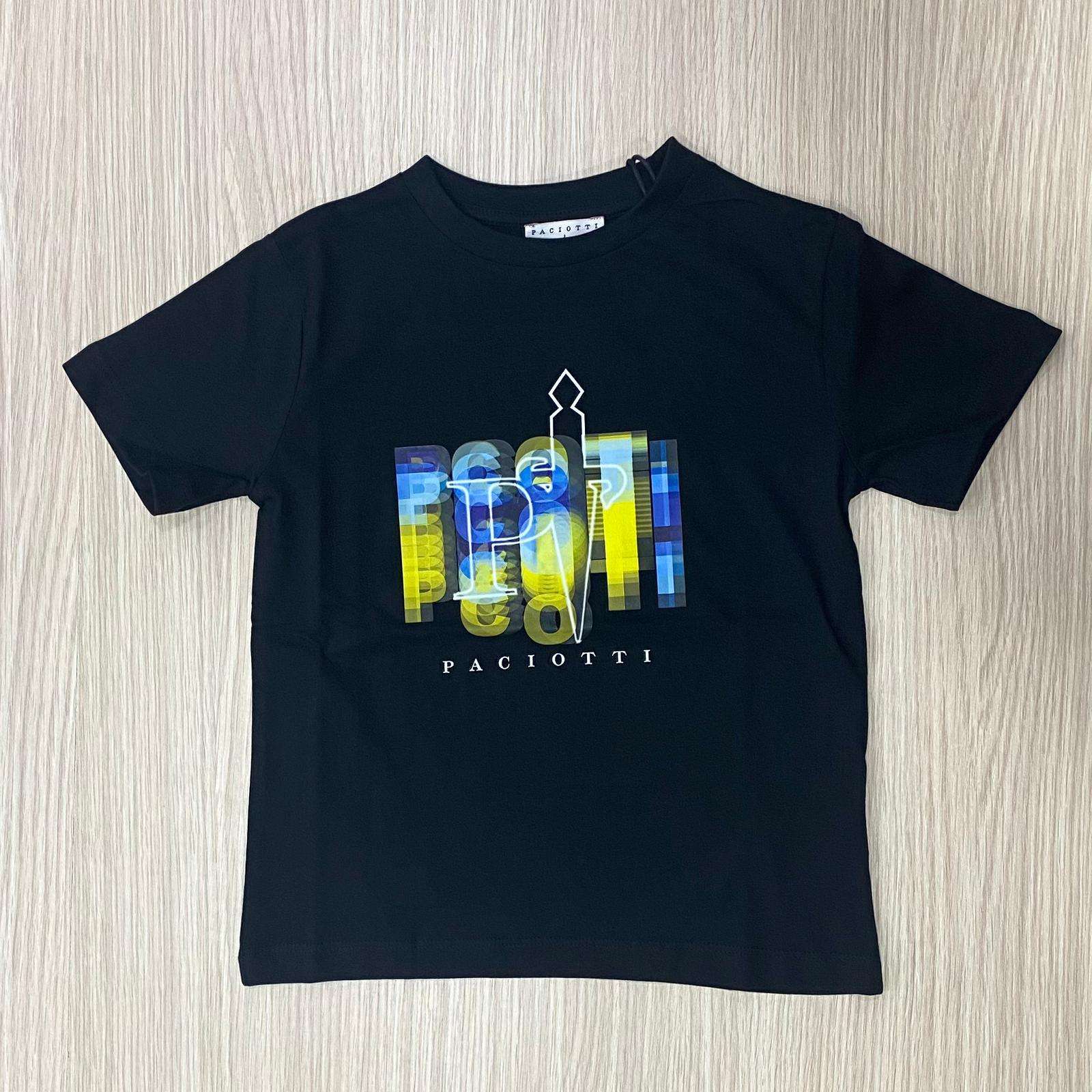 T-shirt bambino/ragazzo firmata Paciotti realizzata in cotone 100%, morbido e traspirante, ideale per garantire comfort durante tutta la giornata. Il modello presenta girocollo classico e vestibilità regolare, perfetta per un look casual ma ricercato. T-shirt di colore nero, con stampa di vari colori. Sul davanti spicca l’iconico logo Paciotti con pugnale centrale, stampato in tonalità a contrasto che dona carattere e stile deciso al capo. Il colore scuro rende la maglietta versatile e facilmente abbinabile a jeans, bermuda o pantaloni sportivi. Un capo moderno e grintoso, pensato per ragazzi che amano distinguersi con dettagli iconici e di tendenza. 100% Cotone.