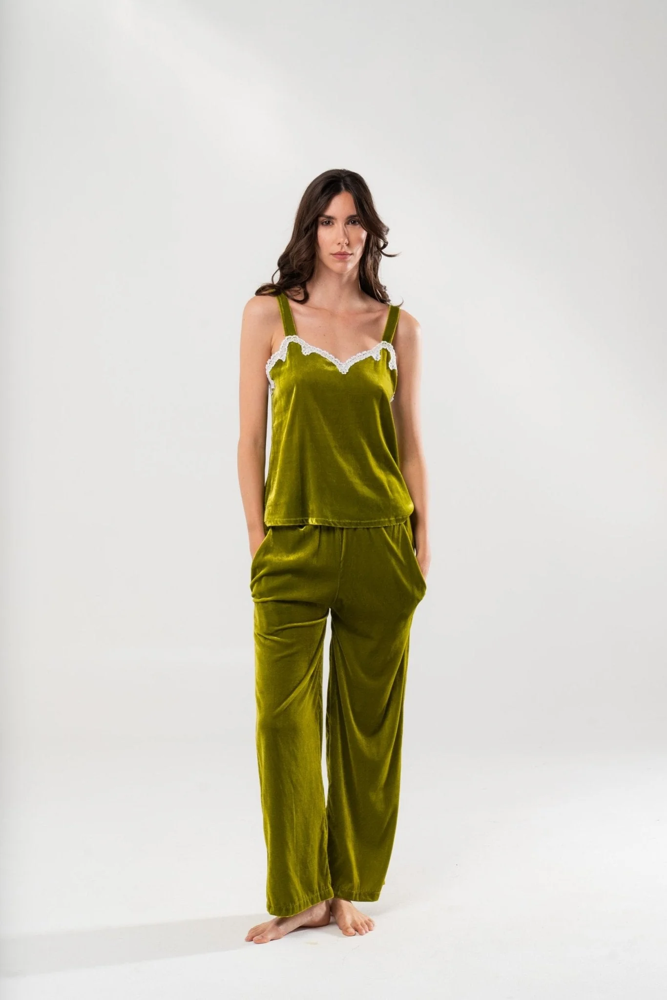 - Top in velluto di seta colore verde