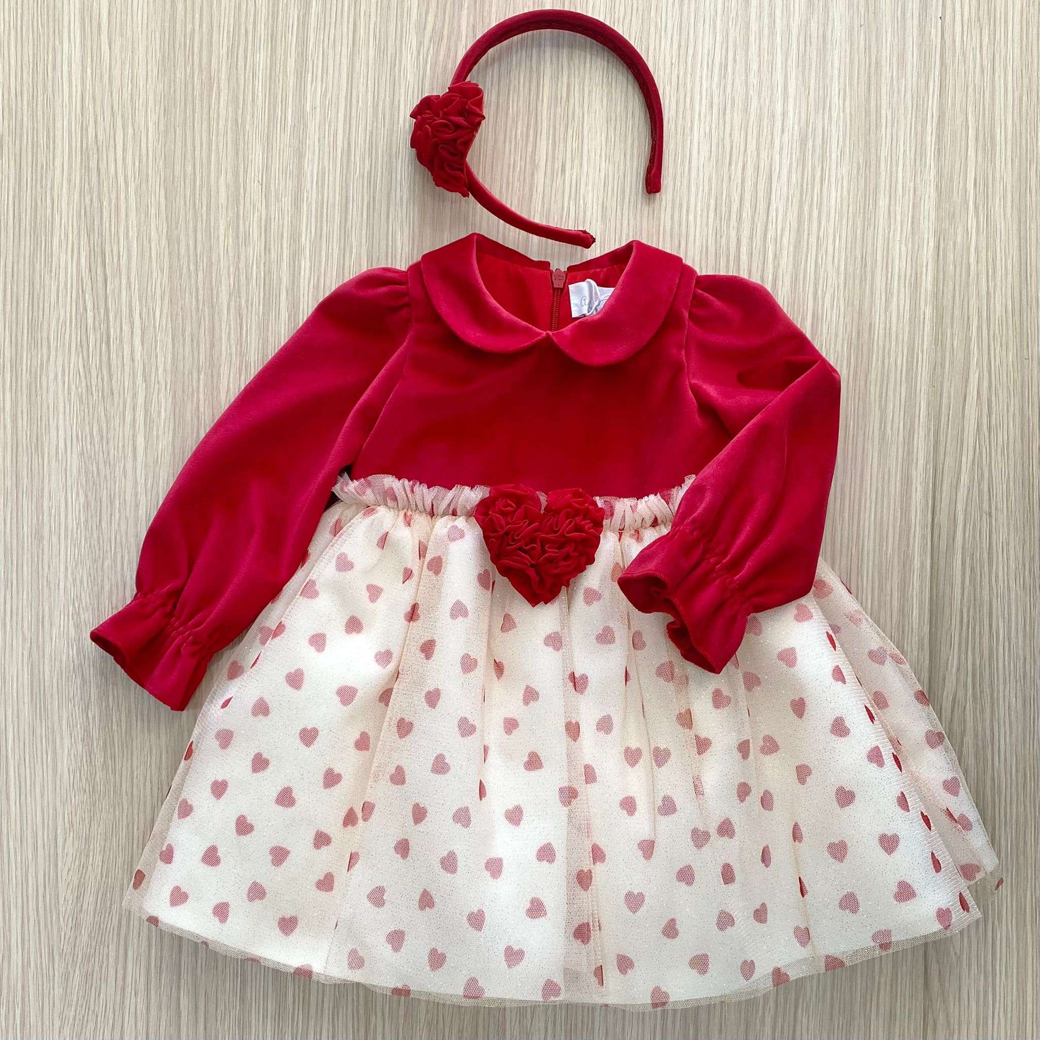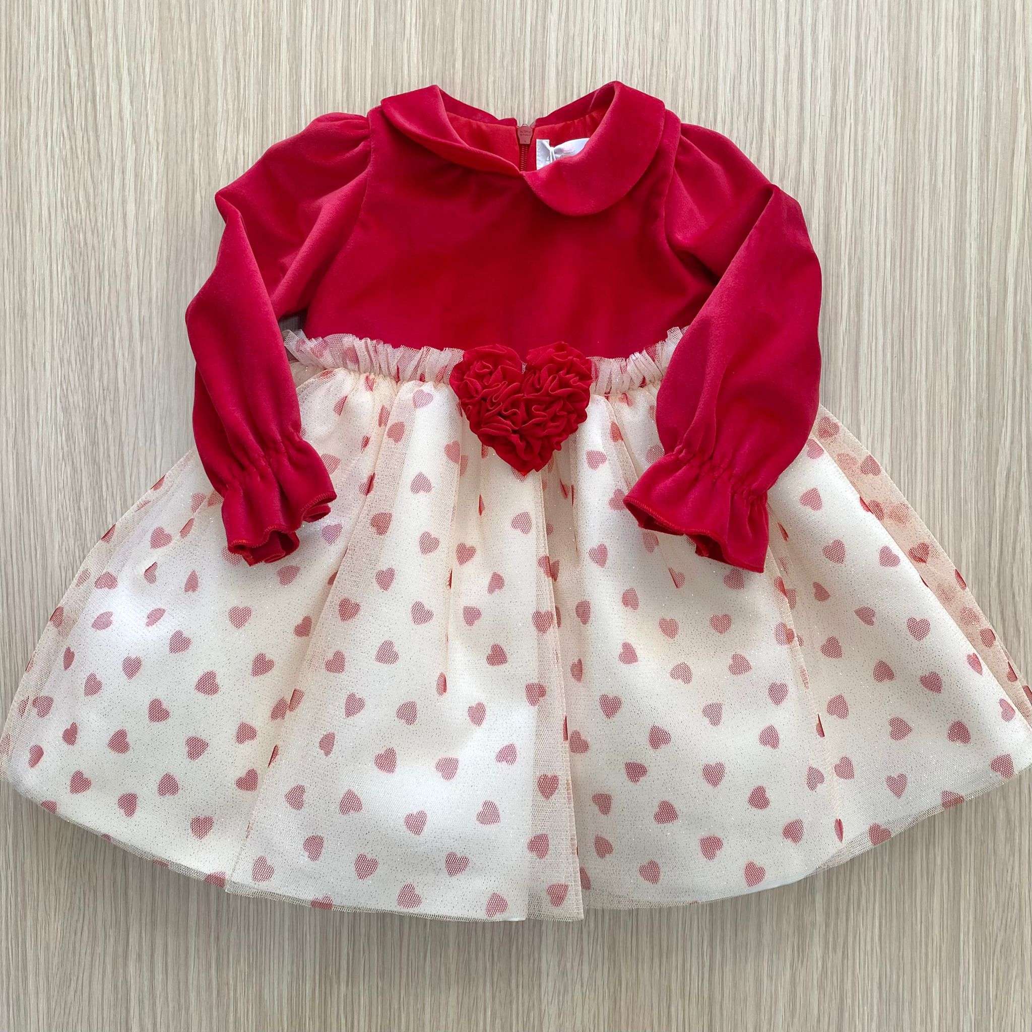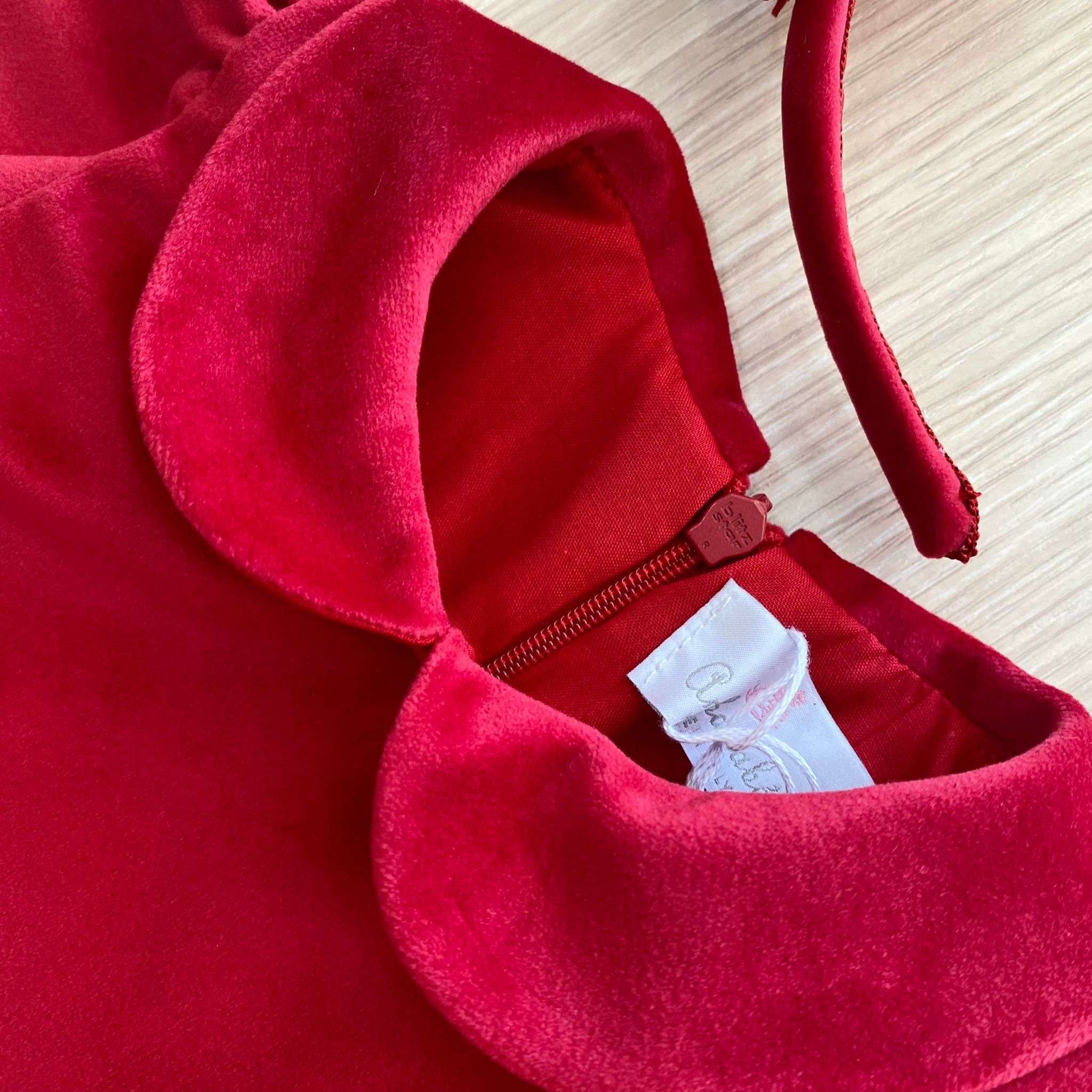 Vestina bambina elegante in velluto rosso, con tulle brillantinato. Vestina con applicazione di spilla. Vestina con interno balza di tulle e fodera in cotone. Vestina bambina elegante. Apertura con cerniera. Vestina elegante ideale per battesimo e cerimonie. (Vestibilità un pò piccola)