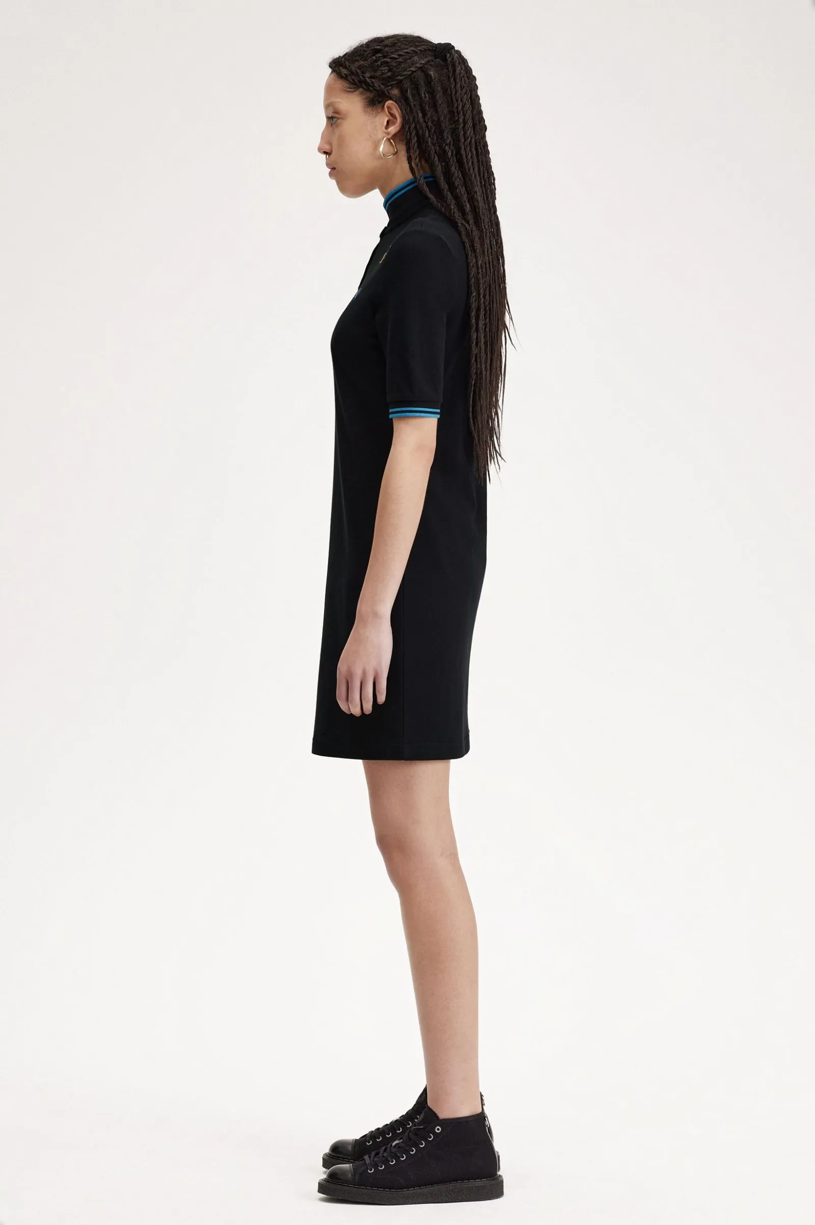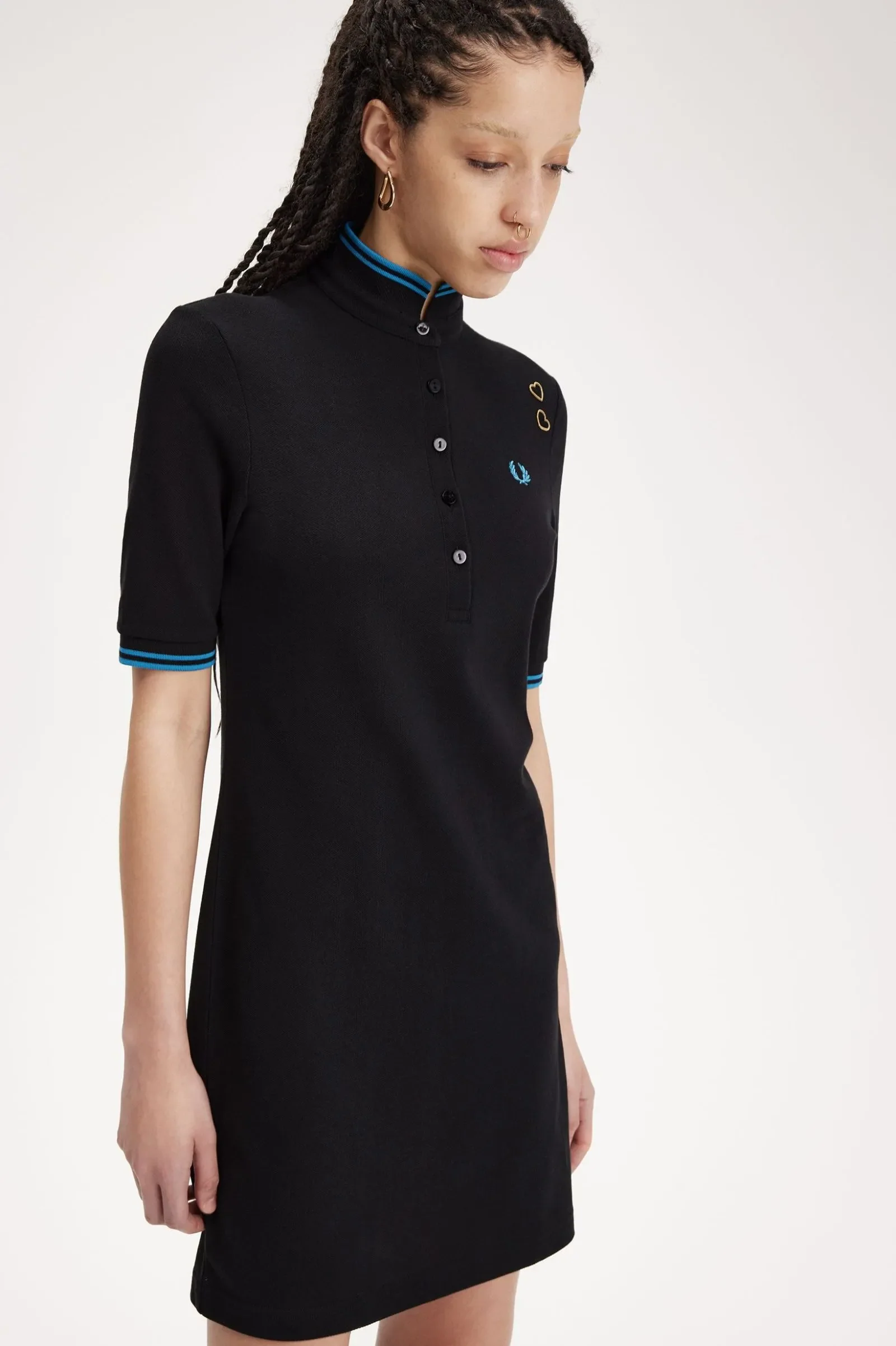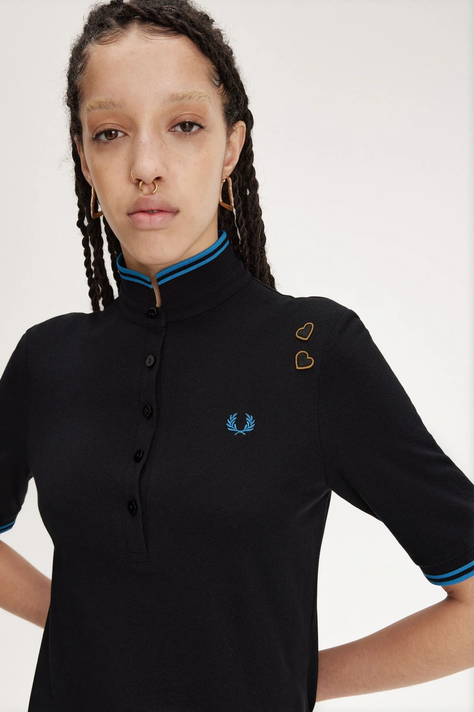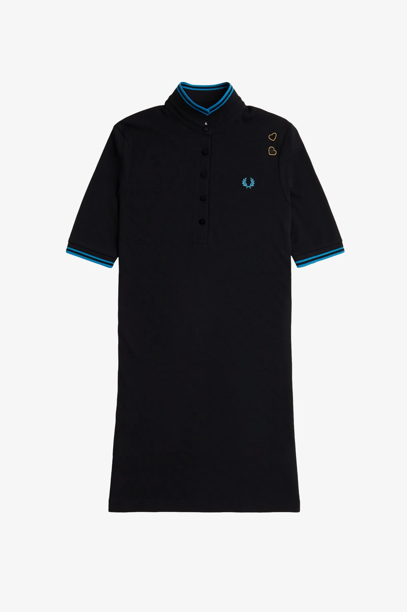 Questo vestito in piqué di cotone con doppia riga unisce due classici: la silhouette senza tempo della polo Fred Perry e l’estro creativo di Amy Winehouse. Nato dalla collaborazione con la Amy Winehouse Foundation, questo capo è perfetto per la sera, offrendo libertà di movimento e traspirabilità per ballare tutta la notte.